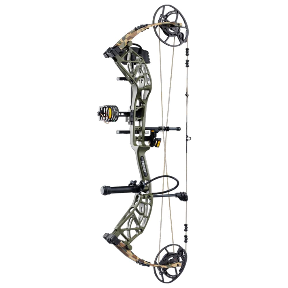 The Bear Whitetail INT RTH RH60 Throwback Green Bow AV56A41136R is a high-performance compound bow designed for right-handed archers who demand power and precision. Featuring a striking throwback green finish, this bow stands out with its unique and vibrant appearance. With a draw weight of 60 pounds, it delivers powerful shots with exceptional speed and accuracy, achieving speeds up to 339 feet per second. The bow includes the EKO cam system, providing an ultra-comfortable 90% let-off, and features an Integrate Mounting System® rest and picatinny sight mounting locations for easy customization. The new roller cable guard system and KillerWave limb dampeners ensure a smooth and vibration-free shooting experience. Ready to hunt (RTH) right out of the box, it includes essential accessories such as a Trophy Ridge 4-pin sight, Whisker Biscuit arrow rest, Trophy Ridge 5-arrow quiver, stabilizer, peep sight, and wrist sling.