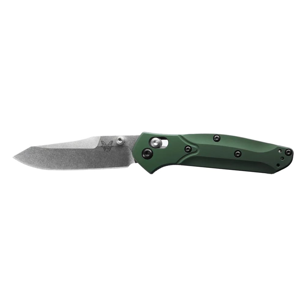 The Benchmade 945 Mini Osborne is a masterclass in compact utility and refined design, tailored for those who demand performance in a pocket-friendly package. Its reverse tanto blade shape is engineered for exceptional control and accuracy, making it a reliable companion for detailed tasks and everyday challenges. The knife's green aluminum handle is not only visually striking, but also engineered for a comfortable, secure grip, ensuring confidence in every cut. The Mini Osborne's innovative AXIS locking mechanism delivers a smooth, ambidextrous action, making it a favorite for those who value both safety and speed. Crafted for durability and edge retention, this knife is a versatile tool, equally at home in urban environments and the great outdoors. Whether you're a collector, an everyday carrier, or an outdoor enthusiast, the Mini Osborne is a compact powerhouse you'll reach for again and again.
