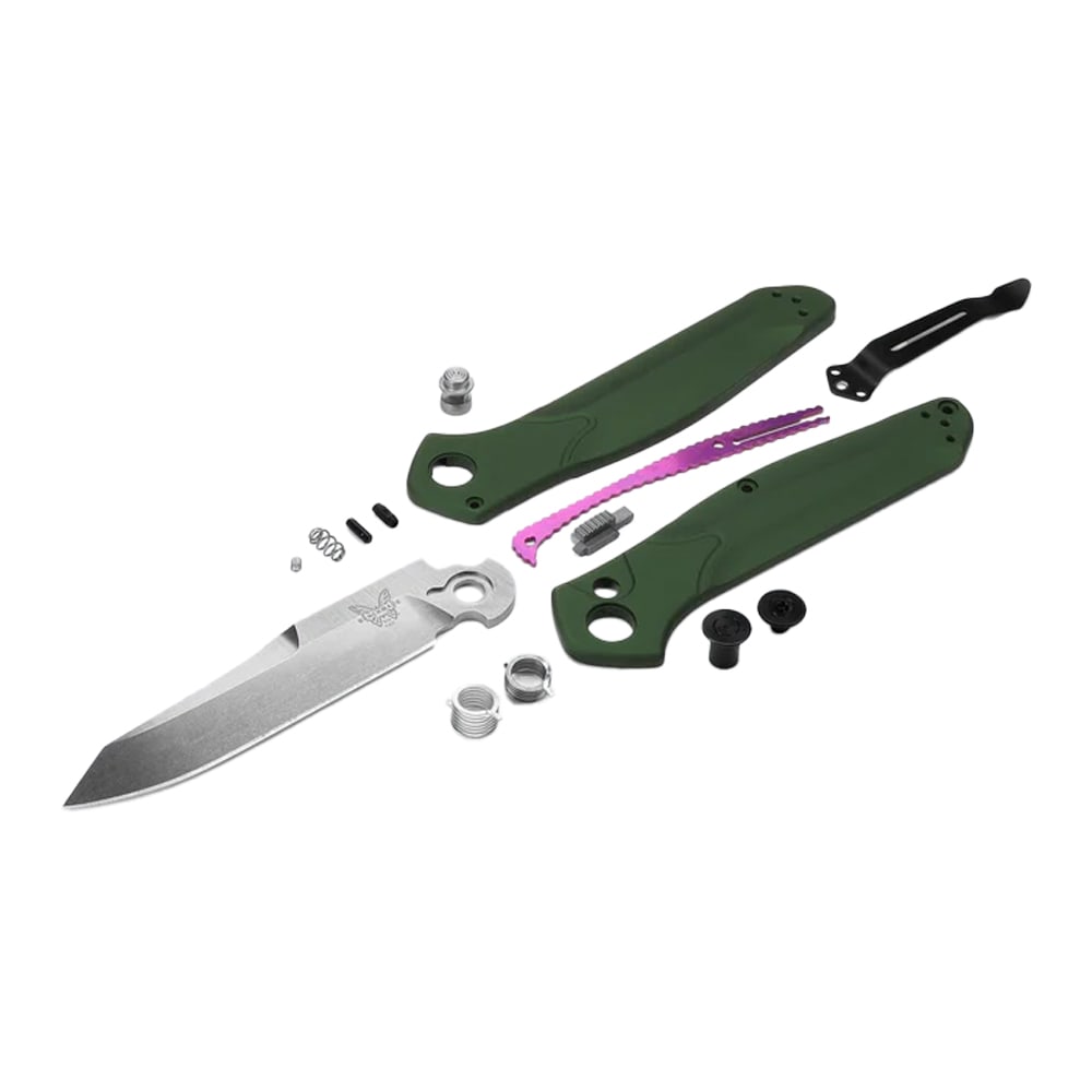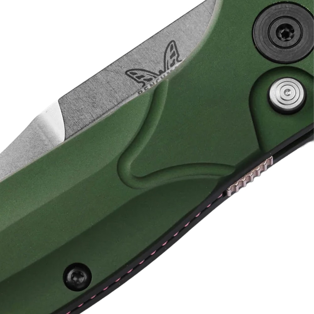 The Benchmade Auto Osborne Reverse Tanto 9400 is a masterful blend of innovation and everyday practicality, designed for those who demand reliability and performance in a sleek, modern package. This automatic knife is a tribute to Benchmade's renowned Osborne series, offering a swift, one-handed deployment for those moments when every second counts. The reverse tanto blade is engineered for superior piercing and slicing, making it a versatile tool for a wide range of cutting tasks. The knife's green aluminum handle is not only visually striking, but also provides a secure, ergonomic grip for confident handling in any situation. Lightweight and compact, the 9400 is the perfect companion for everyday carry, ensuring you're always prepared without the bulk. Crafted from premium materials, it's built to maintain its edge and reliability, making it a trusted tool for years to come.