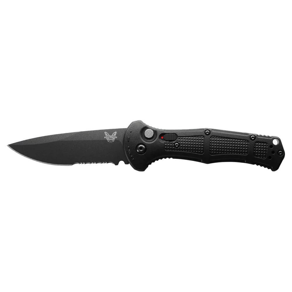 The Benchmade Claymore Auto Serrated Drop-Point Knife 9070SBK is engineered for those who demand reliability and performance in every cut. Designed for both tactical and everyday use, this knife is built to handle a wide range of cutting tasks, from slicing through tough materials to precision work. The Claymore's robust construction and thoughtful ergonomics make it a trusted companion for professionals and outdoor enthusiasts alike. Its automatic opening mechanism ensures rapid, one-handed deployment, giving you instant access to a razor-sharp, serrated blade. The knife's compact, lightweight profile means it's always ready to go, whether clipped to your pocket or stowed in your gear. Experience a cutting tool that's as tough as you are, built to withstand the rigors of daily use and the unexpected challenges of the field.