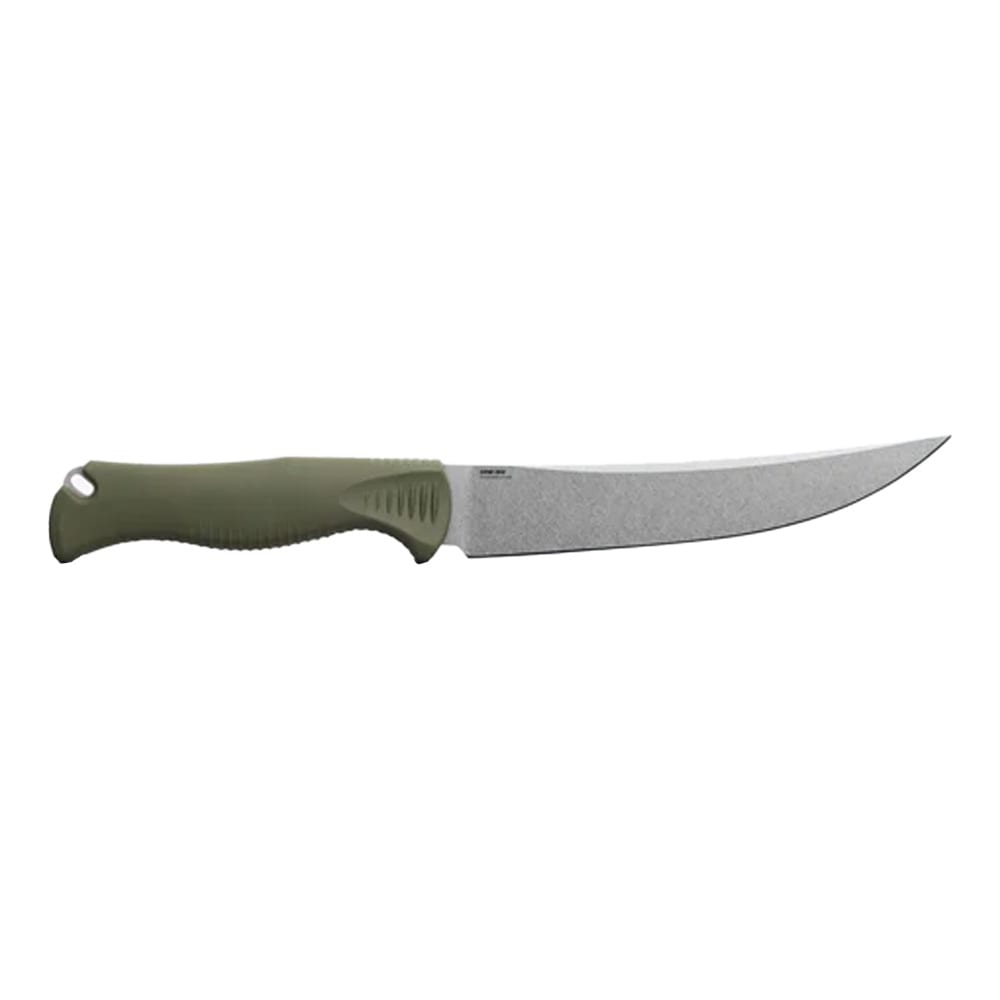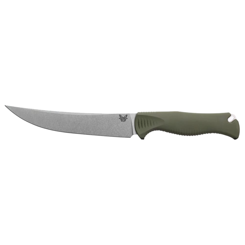 Engineered for those who demand precision and reliability, the Benchmade Meatcrafter 6" Fixed Blade Knife is the ultimate companion for both the kitchen and the great outdoors. Its expertly crafted trailing-point blade is designed for clean, effortless cuts, making it the perfect tool for processing meat, filleting, and tackling a variety of outdoor tasks. The dark olive Santoprene handle is not only visually striking, but it also provides a secure, non-slip grip, ensuring comfort and control even in wet or slippery conditions. Built with high-quality steel, the blade maintains its sharp edge and resists wear, making it a dependable choice for hunters, campers, and culinary enthusiasts alike. Compact and versatile, the Meatcrafter is ready for any adventure or culinary challenge, blending Benchmade's renowned craftsmanship with practical, real-world performance.