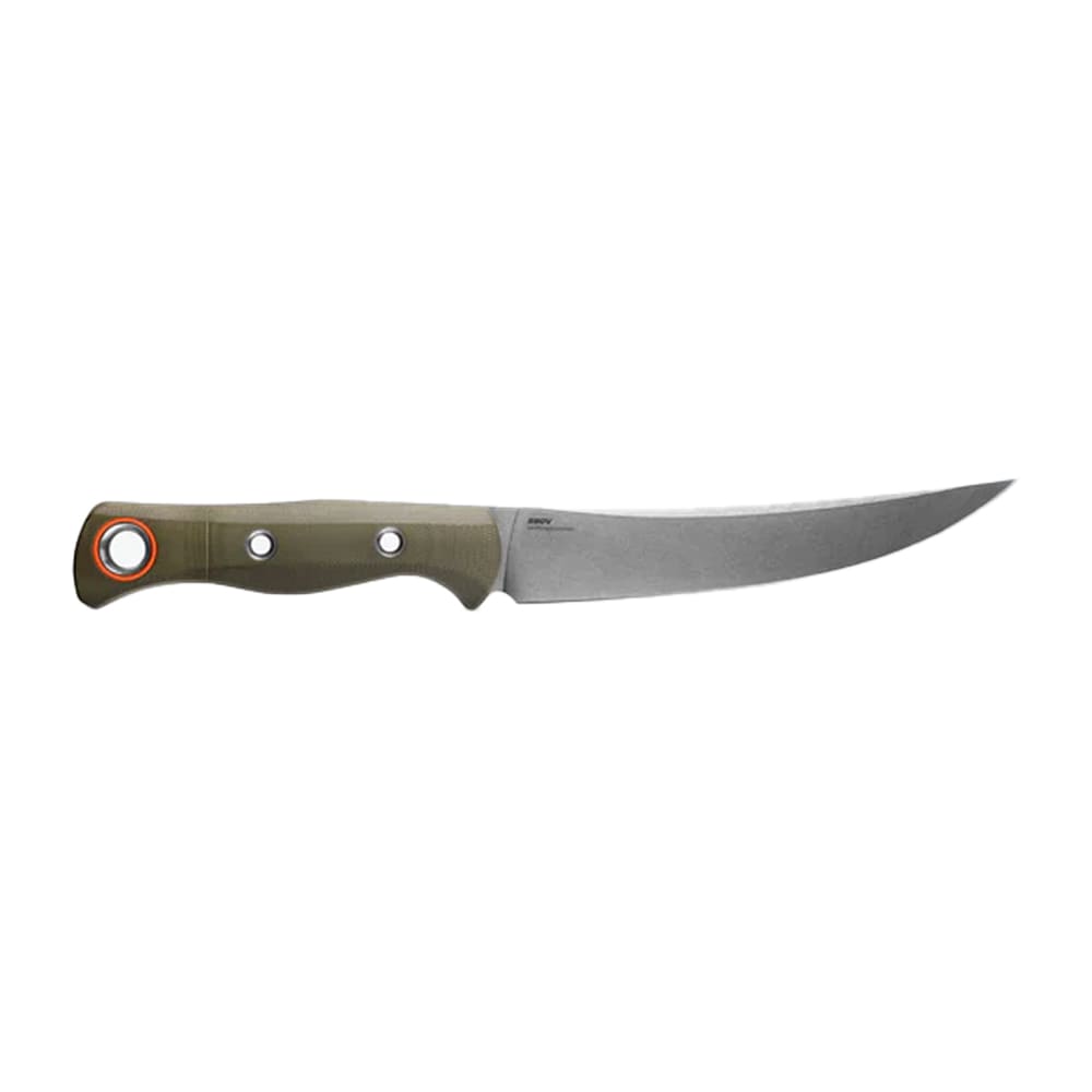 Engineered for those who demand precision and reliability in the field, the Benchmade Meatcrafter 6" Fixed Blade Knife is the ultimate companion for outdoor enthusiasts and culinary adventurers alike. Its expertly crafted trailing-point blade is designed for seamless, controlled slicing, making it the perfect tool for processing game, preparing camp meals, or tackling any outdoor cutting task. The olive drab green G10 handle not only provides a secure, slip-resistant grip in any weather, but also adds a touch of rugged style. Built to withstand the rigors of the wild, the Meatcrafter's stainless steel blade resists corrosion and maintains a razor-sharp edge, ensuring it's always ready for the next challenge. Whether you're a hunter, camper, or survivalist, this compact and versatile knife is designed to perform when it matters most.