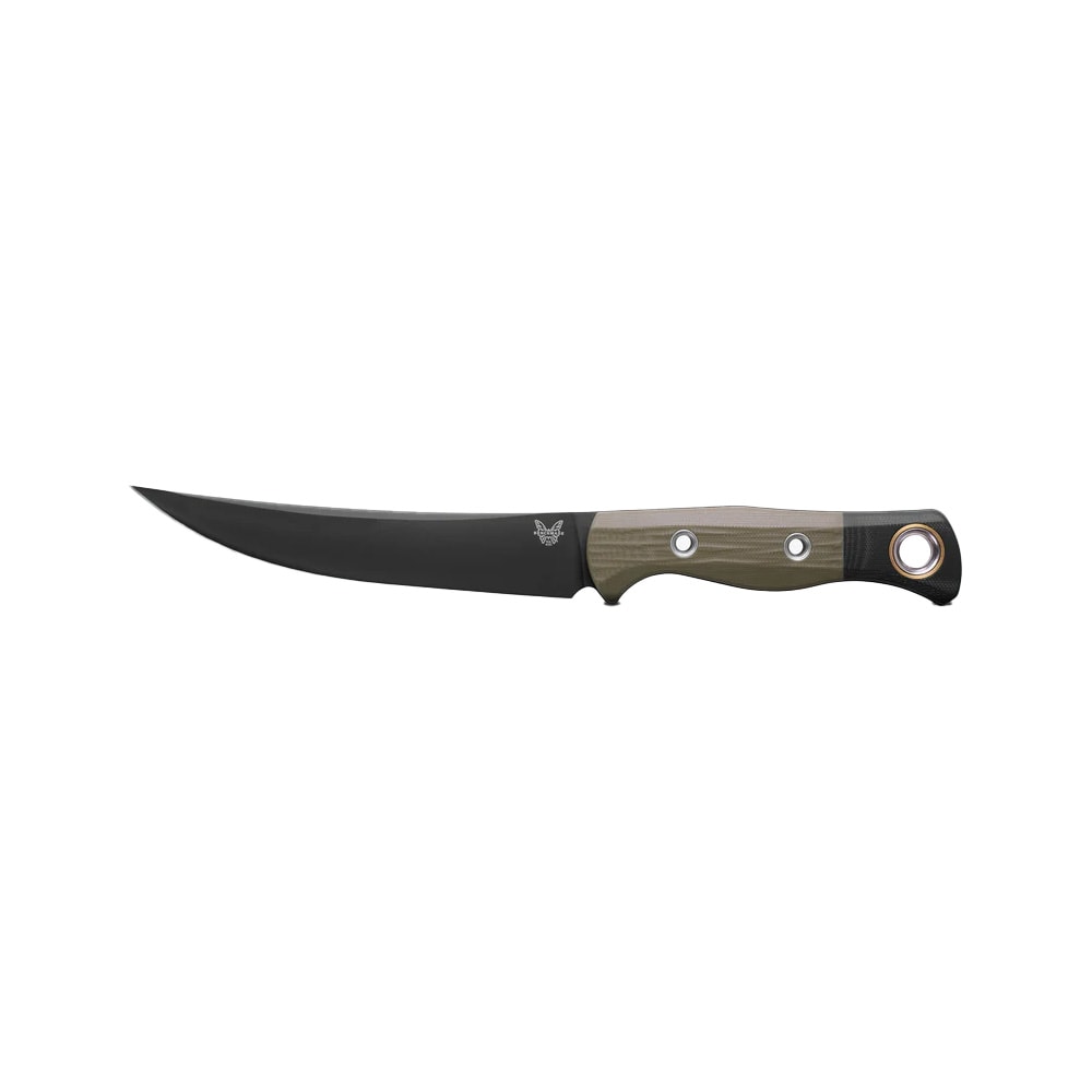 Experience the perfect blend of precision and durability with the Benchmade Meatcrafter Fixed Blade Trailing-Point Knife. Crafted for those who demand excellence in both the kitchen and the great outdoors, this knife is engineered for meticulous cutting, trimming, and slicing. The robust stainless steel blade is honed for lasting sharpness, making it a reliable companion for everything from preparing a gourmet meal to field dressing game. The olive drab green and black G10 handle is not only visually striking, but it also provides a secure, slip-resistant grip, ensuring comfort and control with every cut. The Meatcrafter's ergonomic design is tailored for effortless handling, making it a versatile tool for chefs, hunters, and outdoor enthusiasts alike. Whether you're perfecting a cut of meat or preparing a meal by the campfire, this knife is built to elevate your cutting experience.