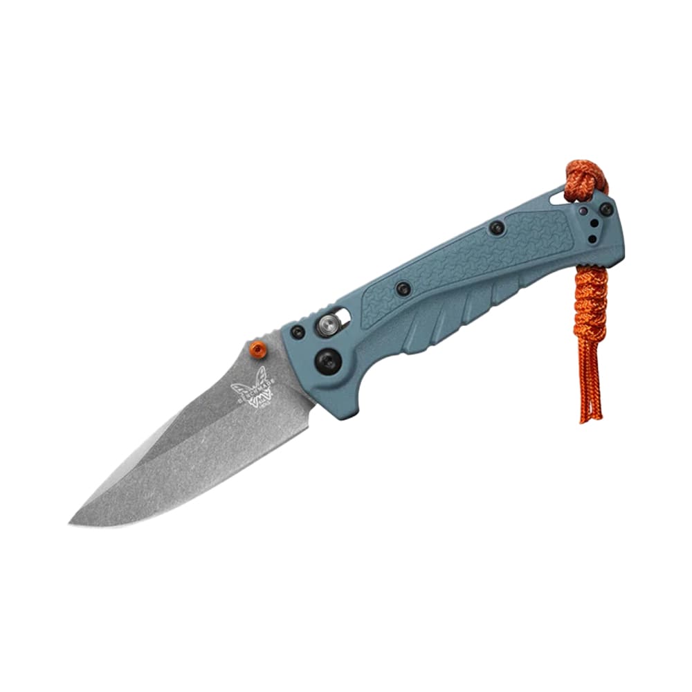 Experience the perfect blend of everyday utility and outdoor reliability with the Benchmade Mini Adira. Designed for those who demand performance in a compact form, this knife delivers a confident, secure feel in the hand, making it a trusted companion for a wide range of tasks. The Mini Adira's drop-point blade is engineered for accuracy and control, making it a go-to for everything from opening packages to preparing for a day in the wild. The striking Depth Blue blade finish not only adds a modern, stylish touch, but also provides a robust layer of protection against the elements. The Grivory handle is thoughtfully contoured for a comfortable, fatigue-free grip, and its lightweight construction ensures the knife is always ready to go, whether clipped in a pocket or packed in a day bag. The Mini Adira is the knife you'll reach for, day in and day out, wherever your adventures take you.