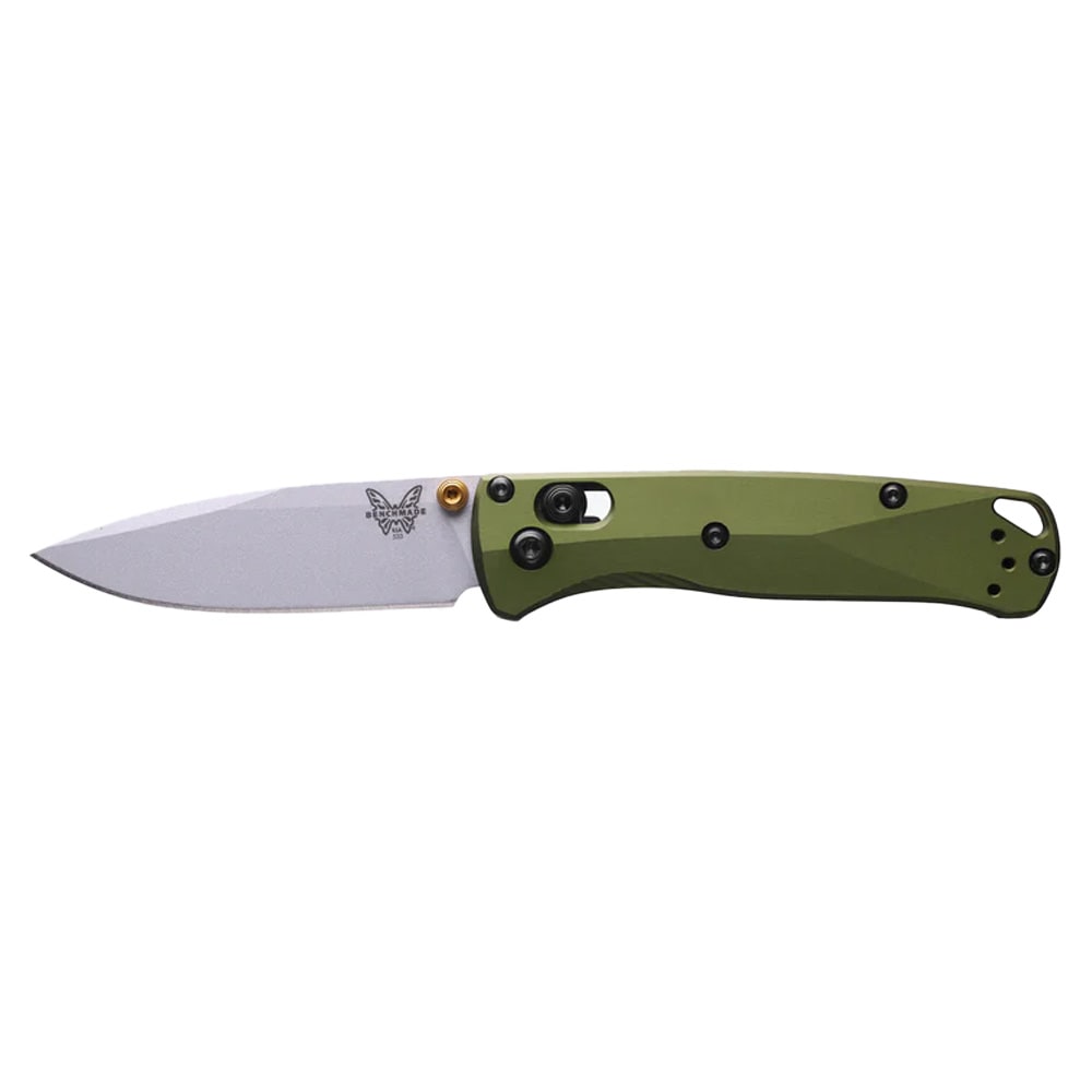 The Benchmade Mini Bugout AXIS Drop-Point Knife 533SL-10 is engineered for those who demand reliability and style in a compact package. Designed for everyday adventurers and outdoor enthusiasts, this knife is a perfect blend of performance and portability. Its streamlined profile slips easily into a pocket or pack, making it a discreet yet indispensable companion for daily tasks or backcountry excursions. The woodland green handle not only adds a touch of tactical flair, but is ergonomically shaped for a secure, comfortable grip, even in challenging conditions. The Mini Bugout is a testament to Benchmade's commitment to quality, offering a knife that's as tough as it is lightweight, and as versatile as it is visually striking.