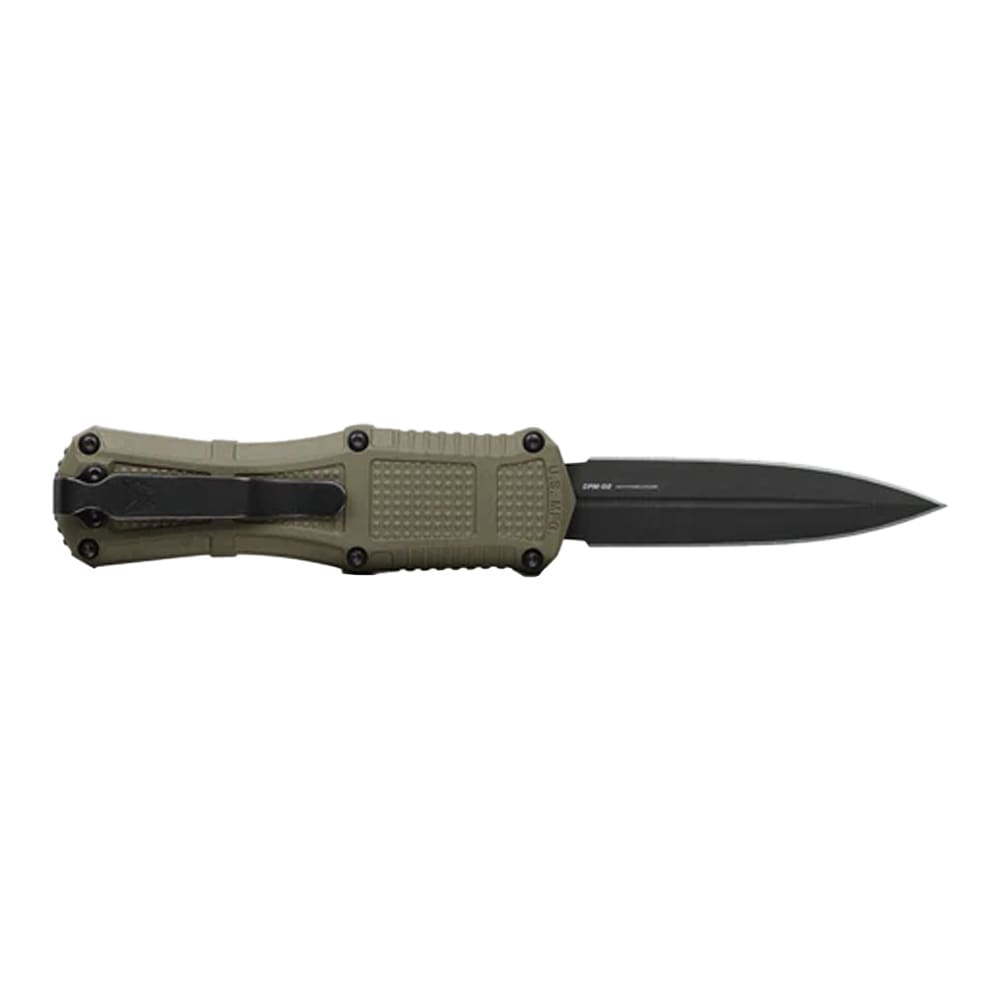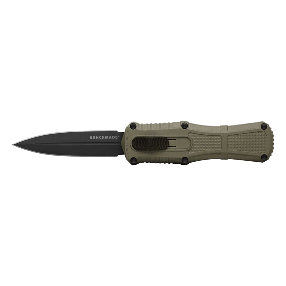 Experience rapid, reliable performance with the Benchmade Mini Claymore Out-the-Front Auto, a compact tactical knife engineered for those who demand speed and precision. Its innovative design ensures the blade is ready for action at a moment's notice, making it a trusted companion for outdoor adventures, tactical operations, and everyday carry. The Mini Claymore's robust construction and thoughtful ergonomics provide a secure, comfortable grip, while the double-edged blade is crafted for both clean cuts and effective piercing. Whether you're navigating the wilderness or handling daily tasks, this knife's compact profile and tactical edge deliver the confidence and capability you need.