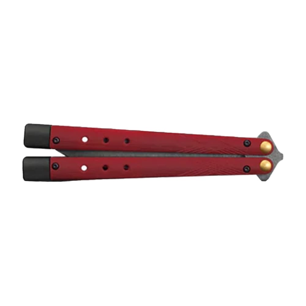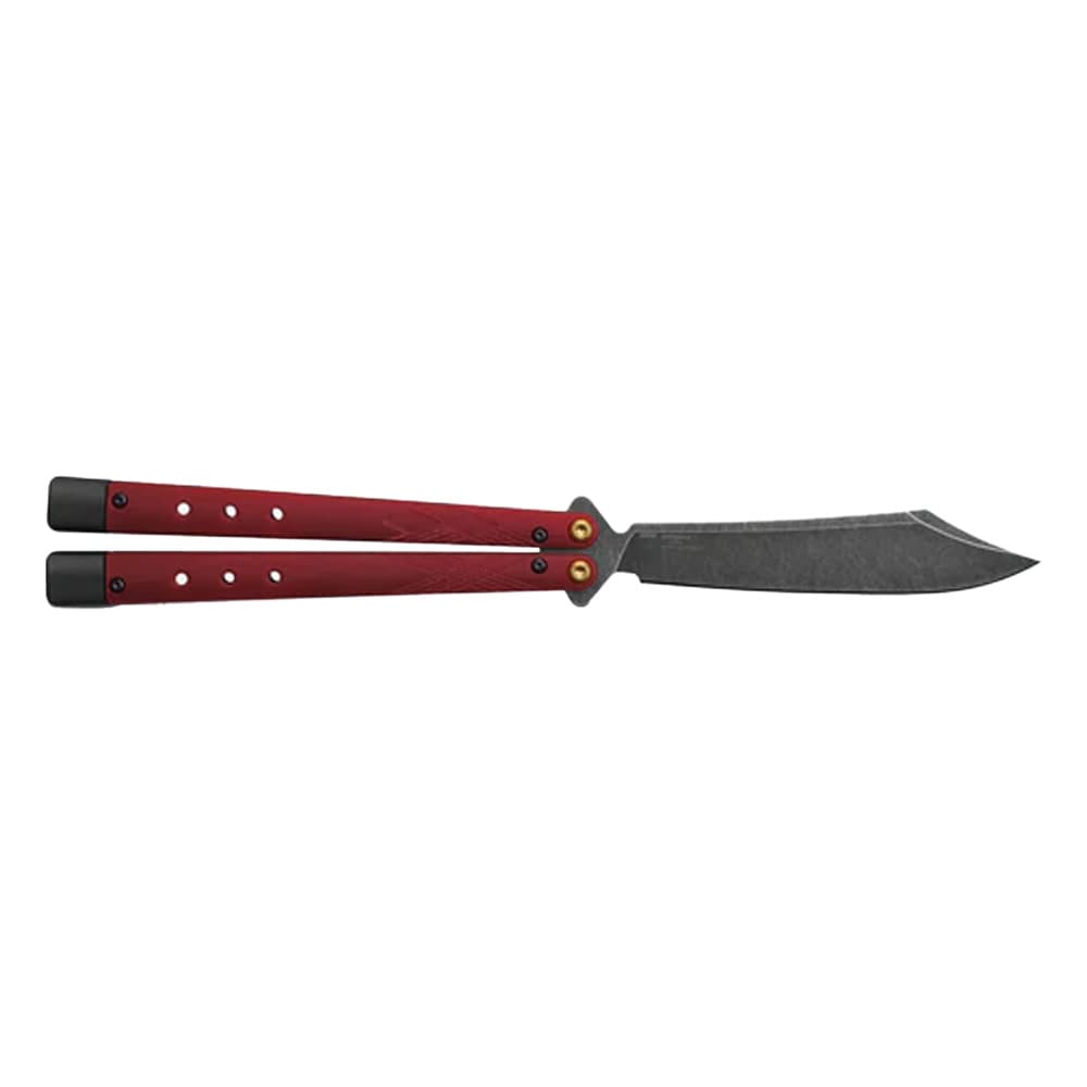 The Benchmade Necron Latchless Balisong in Ruby Red G10 is a modern evolution of the classic butterfly knife, designed for those who demand both performance and style. Its vibrant Ruby Red G10 handle is not only visually striking, but also engineered for a secure, confident grip, making every flip and maneuver feel natural in the hand. The innovative latchless design ensures a seamless, fluid deployment, allowing for quick, uninterrupted action and a sleeker profile. Crafted with a high-quality stainless steel blade, the Necron is built for lasting sharpness and resilience, making it a reliable companion for both everyday carry and display. Its compact, lightweight construction ensures it slips easily into a pocket or pack, ready for action or admiration. Whether you're a seasoned collector or a knife enthusiast seeking a unique addition, the Necron Balisong stands out with its blend of modern design and Benchmade's renowned craftsmanship.
