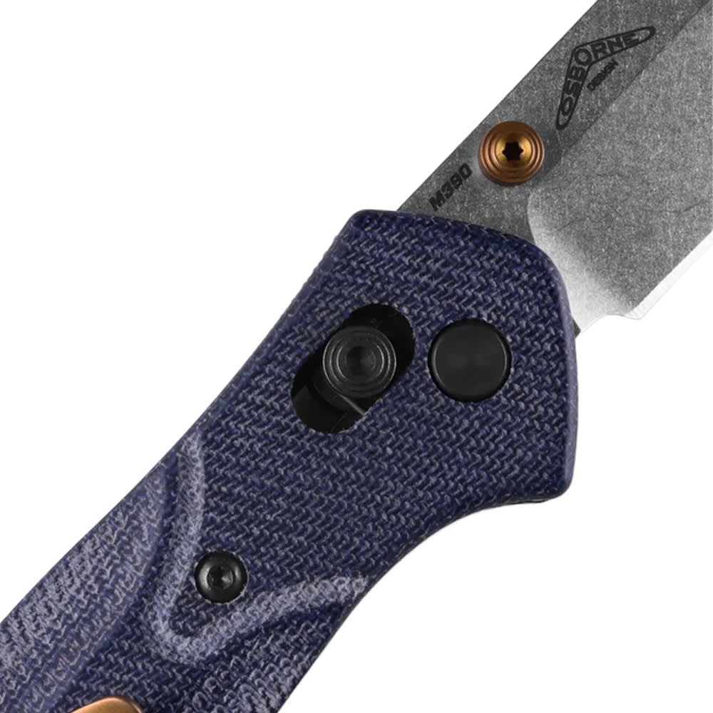 Experience the perfect blend of innovation and craftsmanship with the Benchmade Osborne AXIS Reverse Tanto Denim Micarta Knife 940-04. Designed for those who demand reliability and style in their everyday carry, this knife stands out with its distinctive reverse tanto blade, offering exceptional control for detailed tasks and the strength to tackle tougher jobs. The denim Micarta handle not only adds a unique, rugged aesthetic, but also ensures a secure, comfortable grip in any condition. Whether you're navigating the urban jungle or the great outdoors, the Osborne 940-04 is engineered to be a trustworthy companion, with a compact, lightweight profile that slips easily into your pocket. The AXIS locking mechanism provides smooth, one-handed operation, making this knife as practical as it is striking. Built for versatility, it seamlessly transitions from everyday tasks to tactical and outdoor adventures, making it a must-have for knife enthusiasts and professionals alike.
