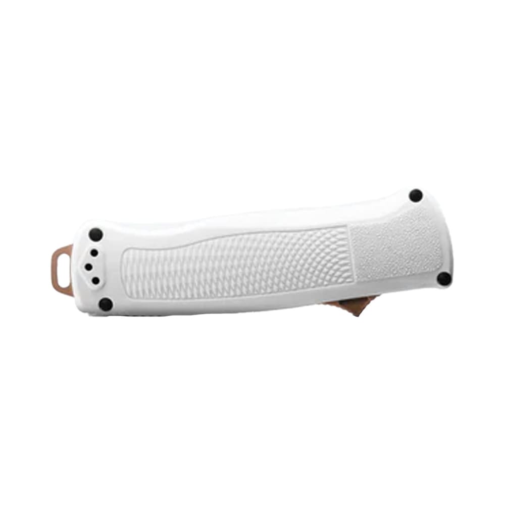 The Benchmade Shootout Out-the-Front Auto 5370FE-02 is engineered for those who demand speed, reliability, and precision in a compact package. Designed for tactical and everyday carry, this knife is a testament to Benchmade's commitment to innovation and quality. The Shootout's out-the-front automatic mechanism ensures lightning-fast, one-handed blade deployment, making it a trusted companion in high-pressure situations. The tanto blade, renowned for its strength and piercing ability, is crafted from premium steel to maintain a razor-sharp edge through repeated use. The cool gray Grivory handle is not only visually striking, but also offers a lightweight, ergonomic grip for confident handling in any environment. Whether you're a first responder, outdoor enthusiast, or everyday user, the Shootout's compact, tactical design ensures it's always ready for action, blending durability, performance, and style in one exceptional tool.