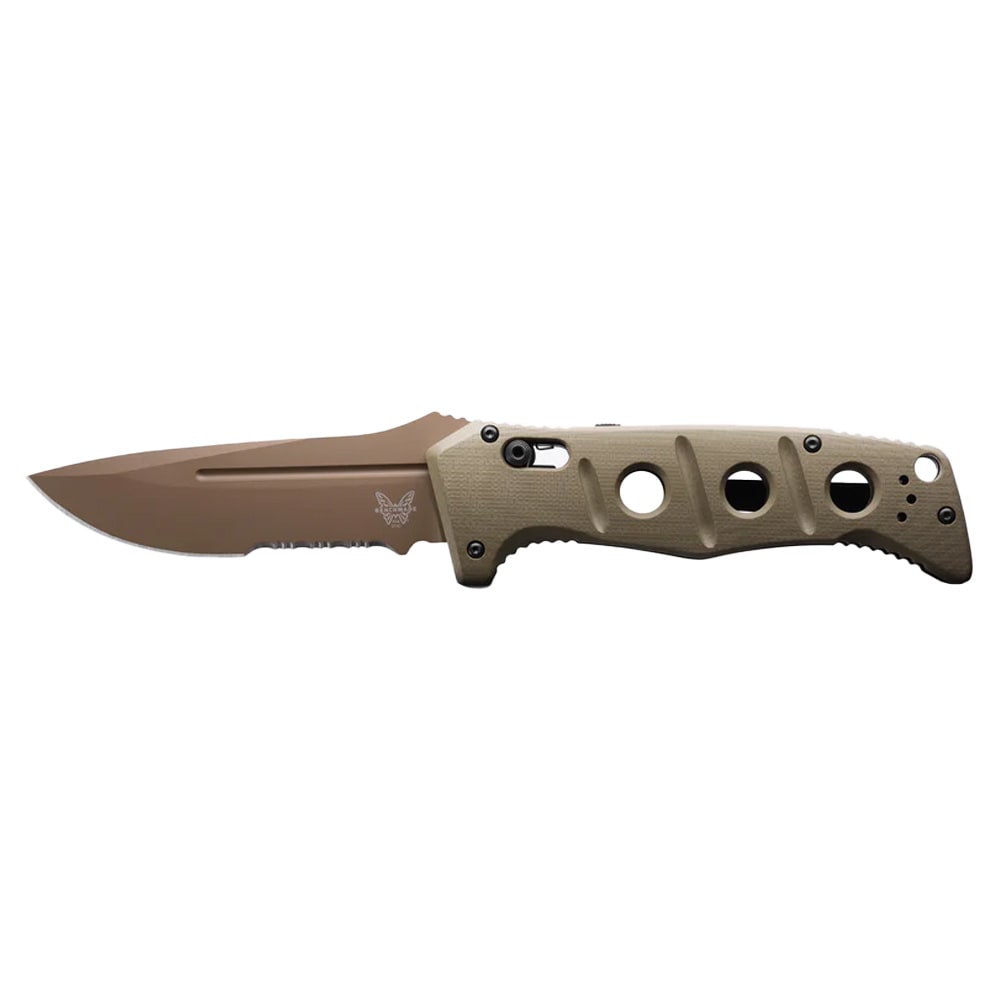 The Benchmade Sibert Auto Adamas AXIS Stud Serrated Drop-Point Knife is engineered for those who demand reliability and performance in every situation. Designed for both tactical and everyday carry, this knife combines rugged durability with swift, one-handed deployment. The olive drab green G10 handle is not only visually striking, but also provides a secure, comfortable grip in any environment, whether you're in the field, on the job, or tackling outdoor adventures. The robust, high-quality stainless steel blade with a serrated edge is ready for a wide range of cutting tasks, from slicing rope to tackling tough materials. The knife's AXIS lock mechanism ensures safe, smooth, and effortless operation, making it a trusted companion for those who value both strength and precision in their gear. Built to withstand the rigors of hard use, the Auto Adamas is a testament to Benchmade's commitment to quality and innovation.