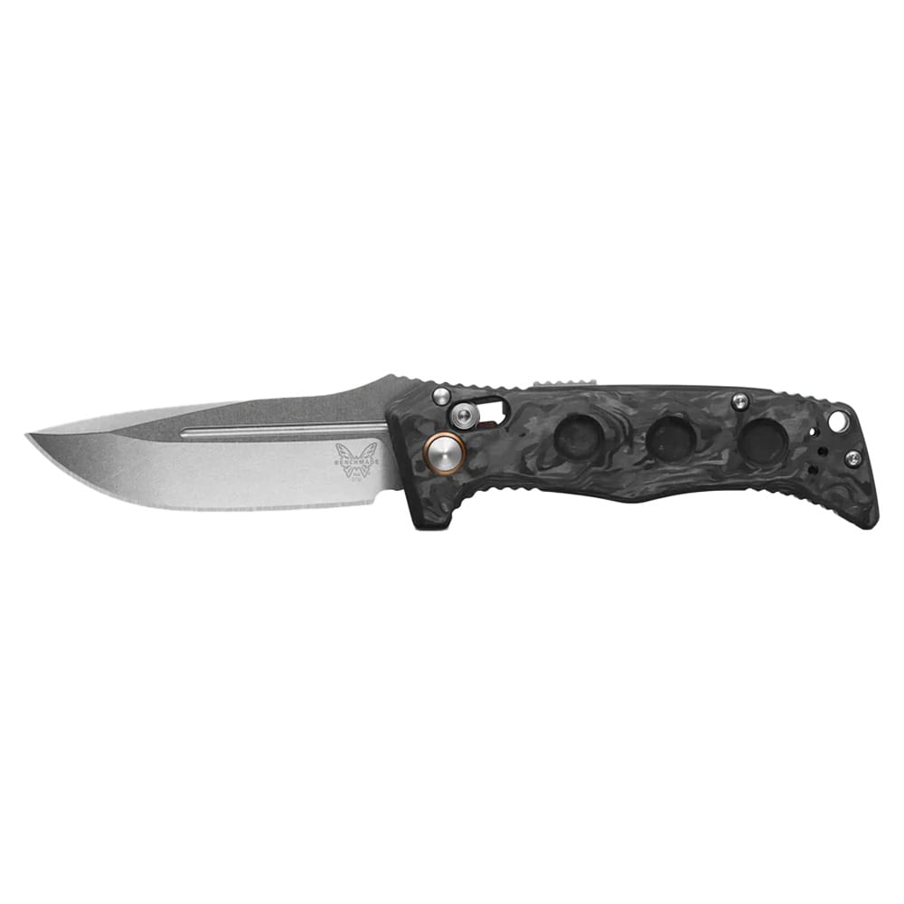 The Benchmade Sibert Mini Auto Adamas 2730-03 is engineered for those who demand uncompromising performance in a compact, stylish package. Designed for everyday carry, this knife seamlessly blends cutting-edge materials with a robust, tactical build. The marbled carbon fiber handle not only delivers a striking, modern look, but also ensures a featherlight feel in hand, making it a pleasure to carry and use. The drop-point blade is meticulously crafted for versatility, excelling in a wide range of cutting tasks with precision and control. The automatic AXIS stud mechanism allows for lightning-fast, one-handed blade deployment, making it a reliable companion in critical moments. Built to withstand the rigors of daily use and the unpredictability of the outdoors, the Mini Auto Adamas is a testament to Benchmade's commitment to quality and innovation.