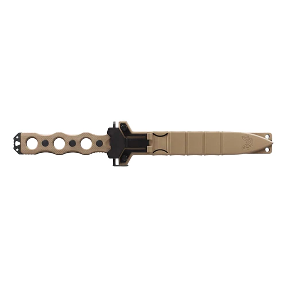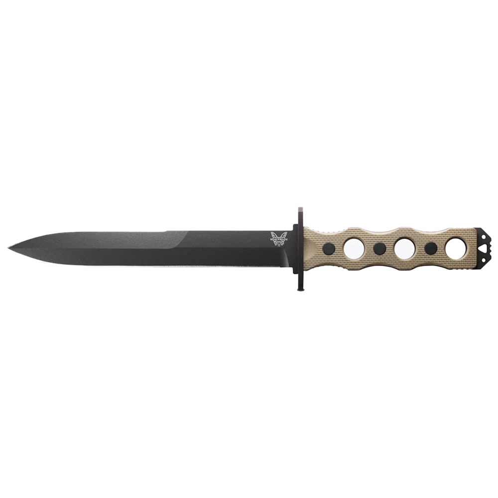 The Benchmade SOCP Fixed Blade Dagger in Desert Tan G10 is engineered for those who demand reliability and performance in critical situations. Designed for both self-defense and outdoor enthusiasts, this dagger is a testament to Benchmade's commitment to quality and innovation. The G10 handle, finished in a striking desert tan, is meticulously contoured to provide a secure, slip-resistant grip, even in challenging conditions. The dagger's compact, tactical profile ensures it is both discreet and ready for rapid deployment, making it a trusted companion for law enforcement, military, and outdoor adventurers alike. The high-grade stainless steel blade is expertly crafted for lasting sharpness and resilience, while its corrosion-resistant properties mean it's ready for action in any environment. Lightweight and perfectly balanced, this dagger is built for those who value speed, precision, and reliability in a blade.