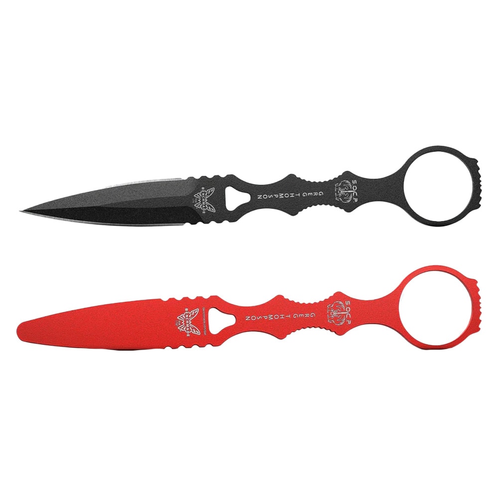 Train with confidence and precision using the Benchmade SOCP Fixed Blade Double-Edge Dagger Trainer Combo. Designed for those who demand the highest standards in their training tools, this trainer offers the authentic feel and balance of the real SOCP dagger, making it the perfect companion for skill development and tactical drills. Its black finish not only delivers a professional, tactical appearance, but also resists wear and tear, ensuring it stands up to the rigors of repeated practice. The trainer's compact and lightweight design allows for agile handling, making it easy to practice a wide range of techniques safely and effectively. Whether you're a professional in law enforcement, a martial artist, or a dedicated enthusiast, this trainer is engineered to help you perfect your techniques with confidence and safety.