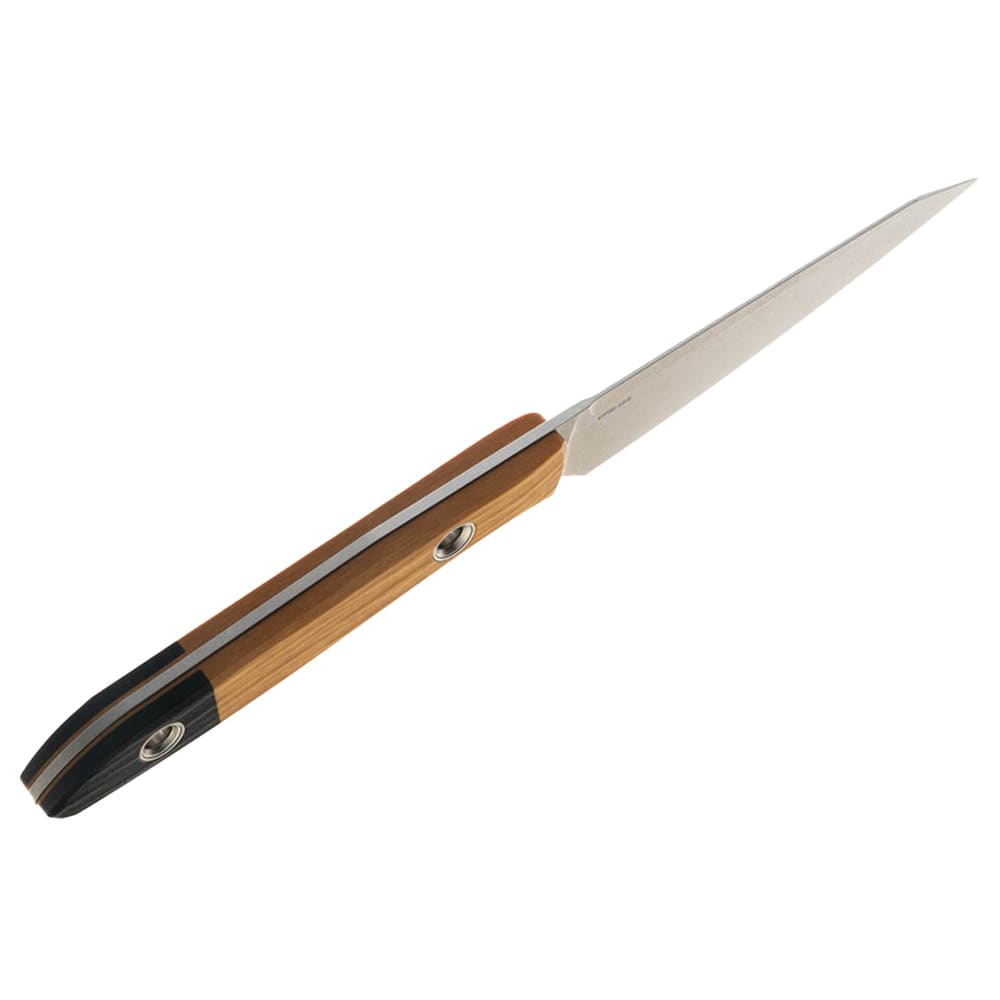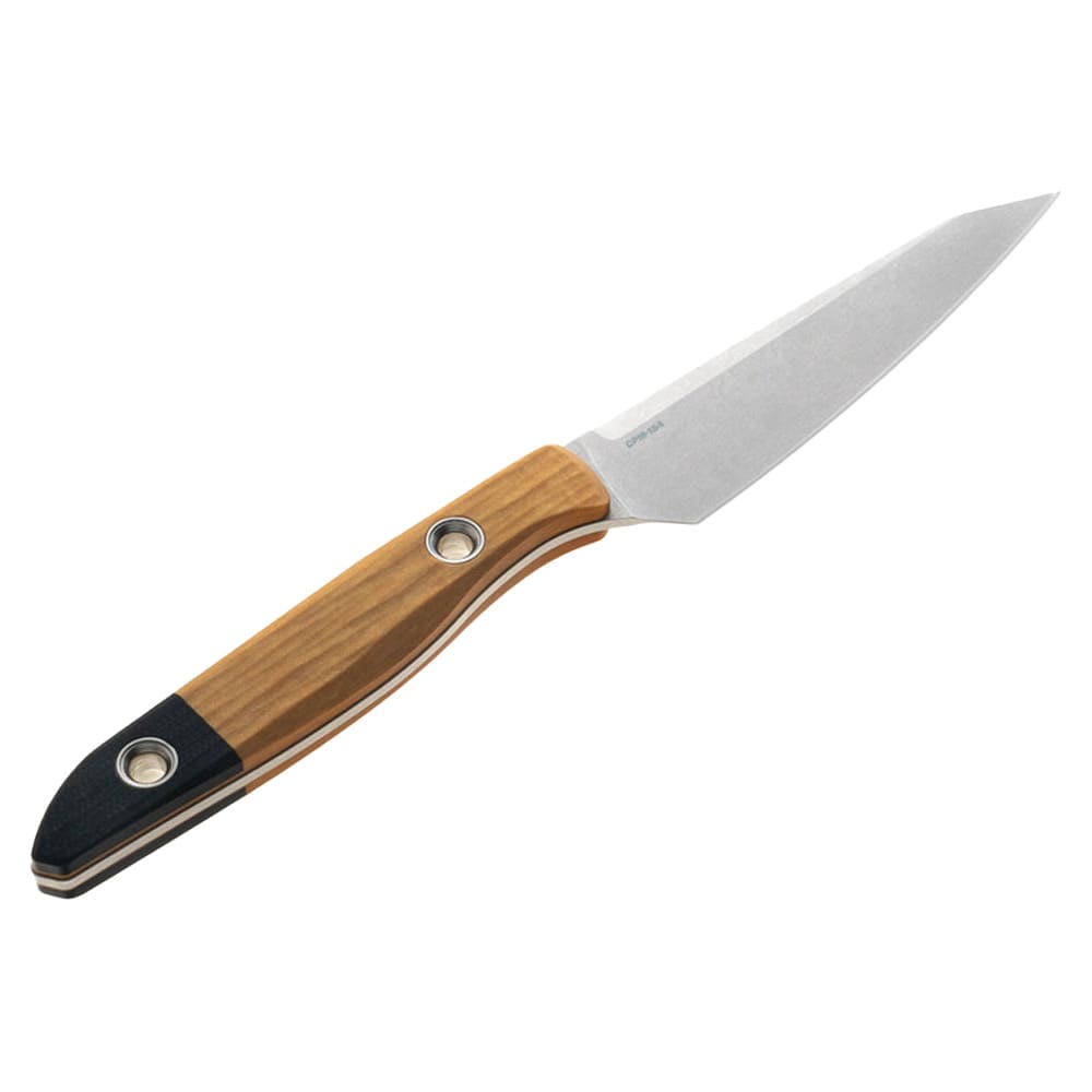 Experience the perfect blend of precision, durability, and style with the Benchmade True Paring Knife 4045-02. Designed for those who demand excellence in the kitchen and beyond, this fixed blade paring knife features a meticulously engineered clip-point blade, making it the ideal tool for intricate slicing, peeling, and trimming. The knife's compact profile and balanced construction allow for effortless maneuvering, whether you're preparing delicate garnishes or tackling outdoor culinary tasks. The handle, crafted from a striking combination of Black G10 and Maple Valley Richlite, not only offers a secure, ergonomic grip but also adds a touch of sophistication to your culinary arsenal. Built to withstand the rigors of daily use, the Benchmade True Paring Knife is a reliable companion for both professional chefs and passionate home cooks who appreciate the art of fine cutlery.