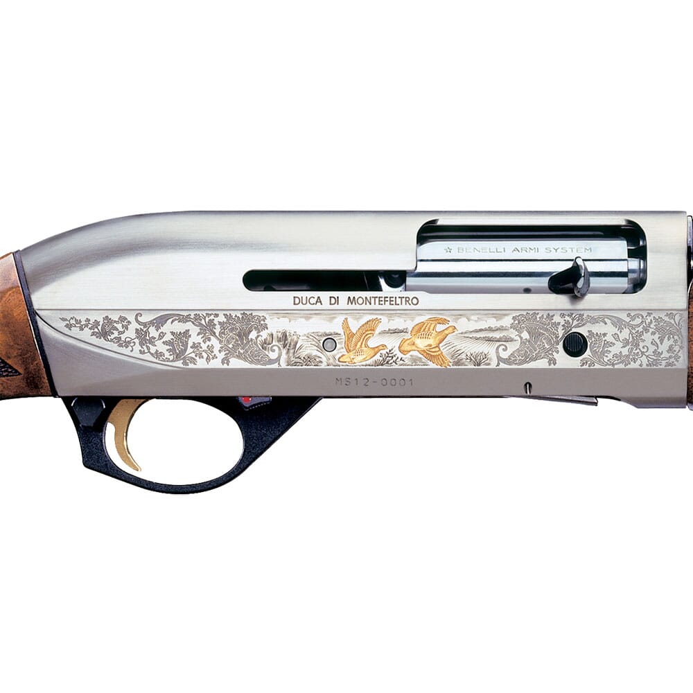 The lack of springs or gas cylinders under the forend allows the Montefeltro’s forend to be slim and graceful, while the lightweight, anodized aluminum receiver keeps weight to a minimum.This shotgun is a classic game gun with the advantages of a semi-automatic and features Crio barrel and choke tubes, bolt-lock lever, removable trigger assembly, and a red bar front sight.