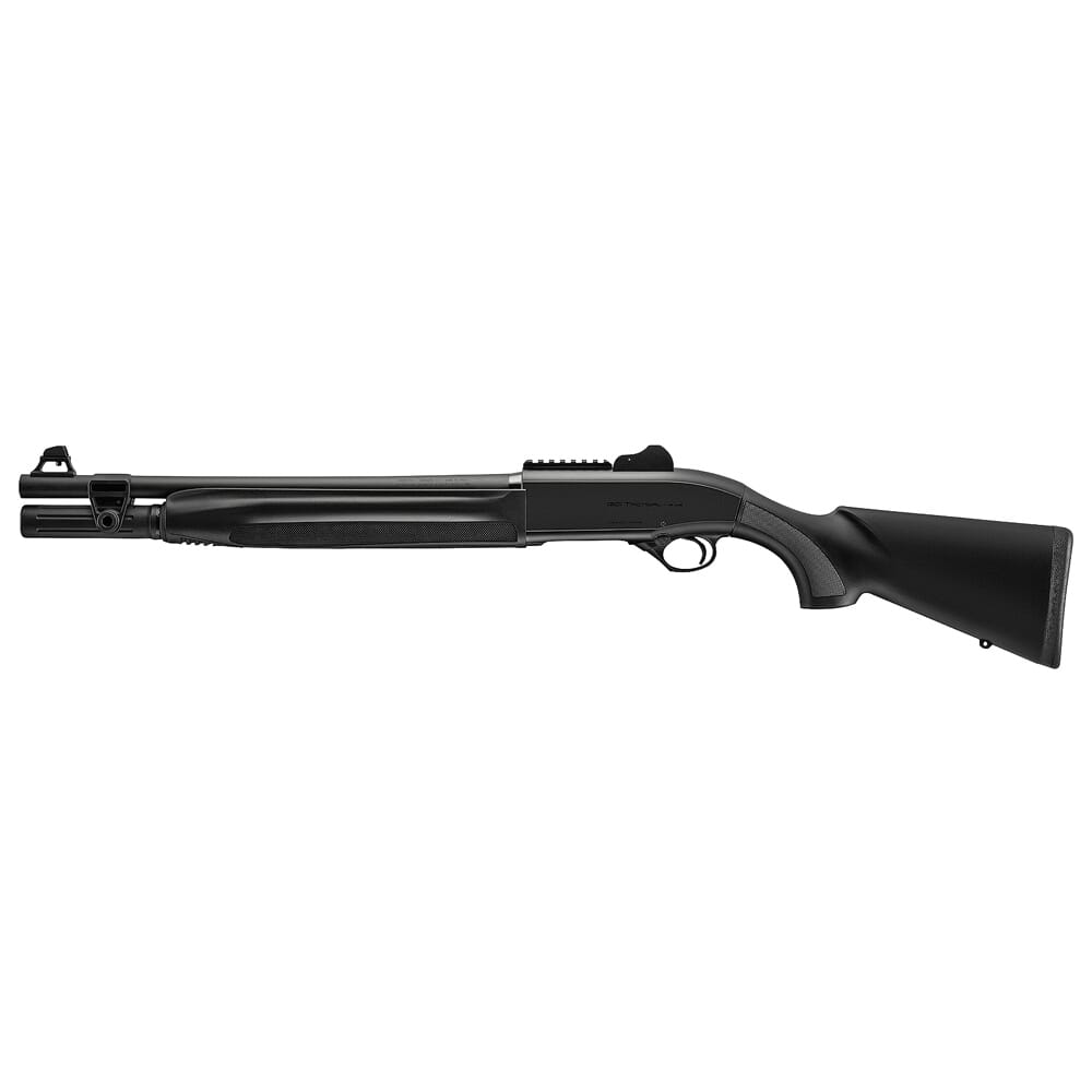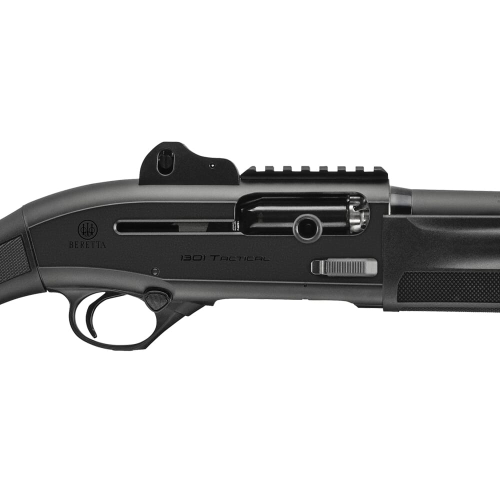 The 1301 Tactical is a semiautomatic gas-operated tactical shotgun manufactured by Beretta, with home-defense and law enforcement applications in mind. The short, 18 ½” barrel gives it a compact size and makes it ideal for engaging targets while in confined spaces. In addition to its effectiveness in close-quarters, the 1301 Tactical was built to be extremely reliable and easy to use. It sports a large textured bolt release, an oversized charging handle, and a hefty safety button that can be switched from side to side. The amplified checkering around the grip and fore-end ensures the operator will have a consistent grip on the weapon, even when wearing gloves. Aside from its ease of use and close range capabilities, the 1301 Tactical is a highly customizable platform; the ghost-ring sight system has a replaceable front sight, the choke is interchangeable, and a receiver mounted MIL-STD Picatinny rail allows for the installation of optics.