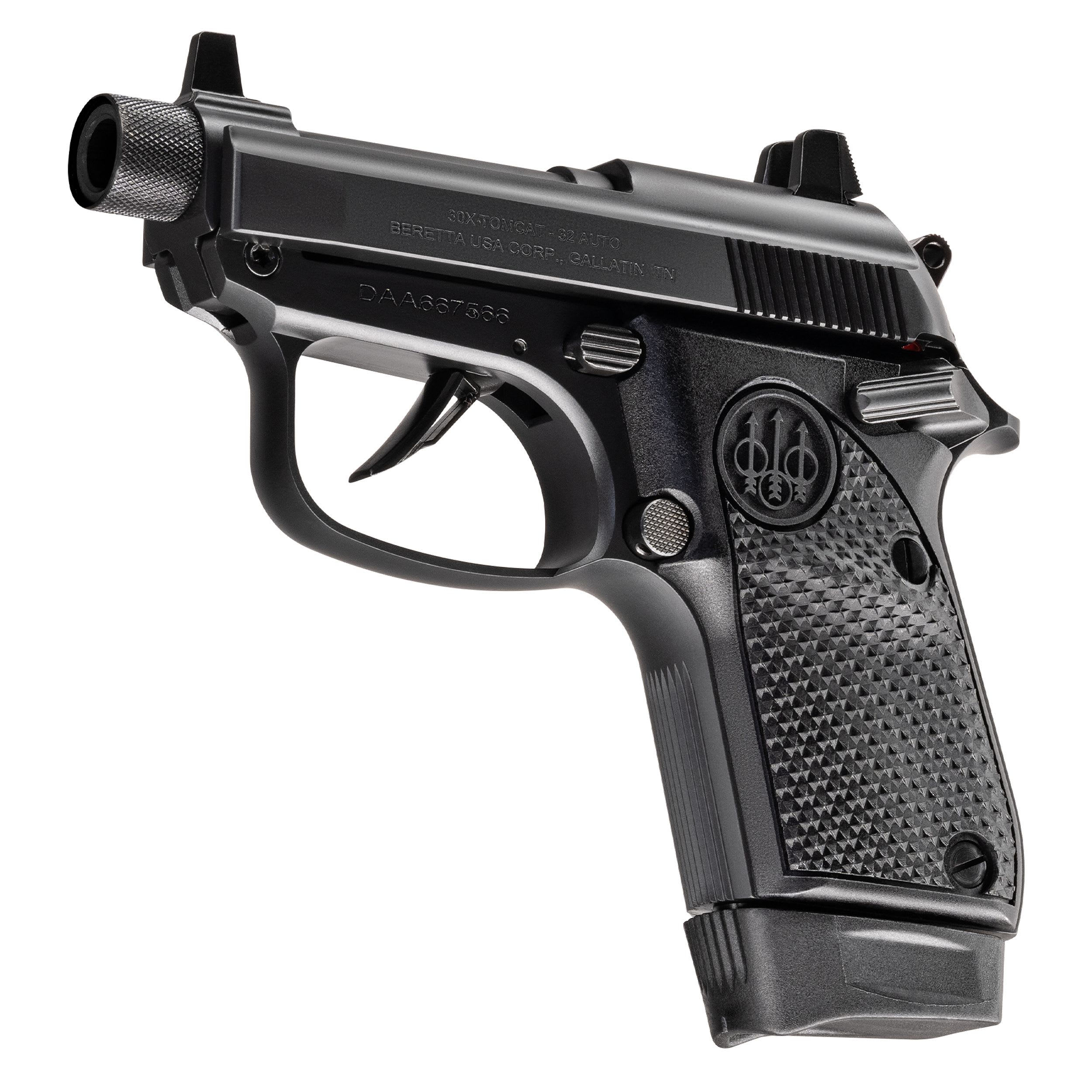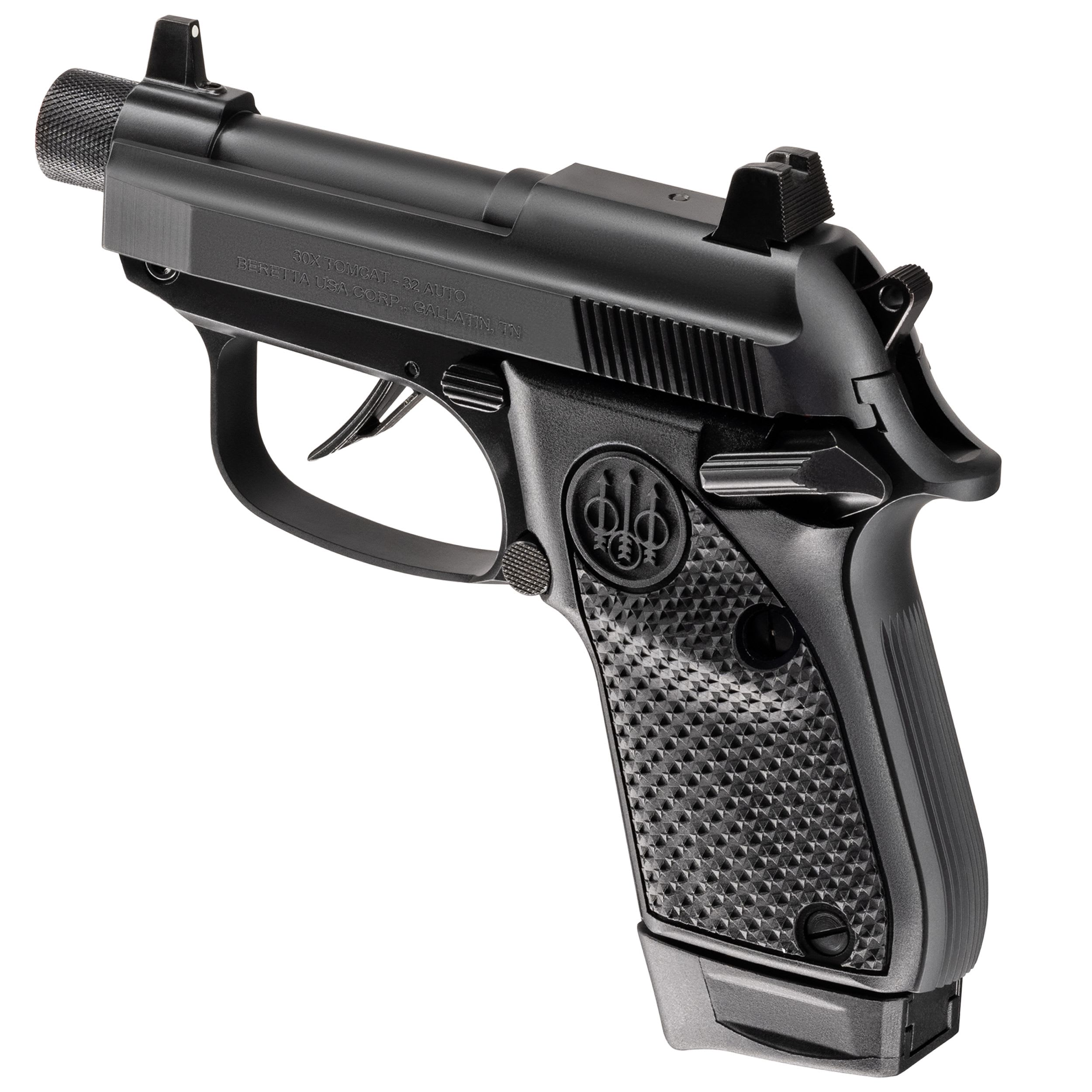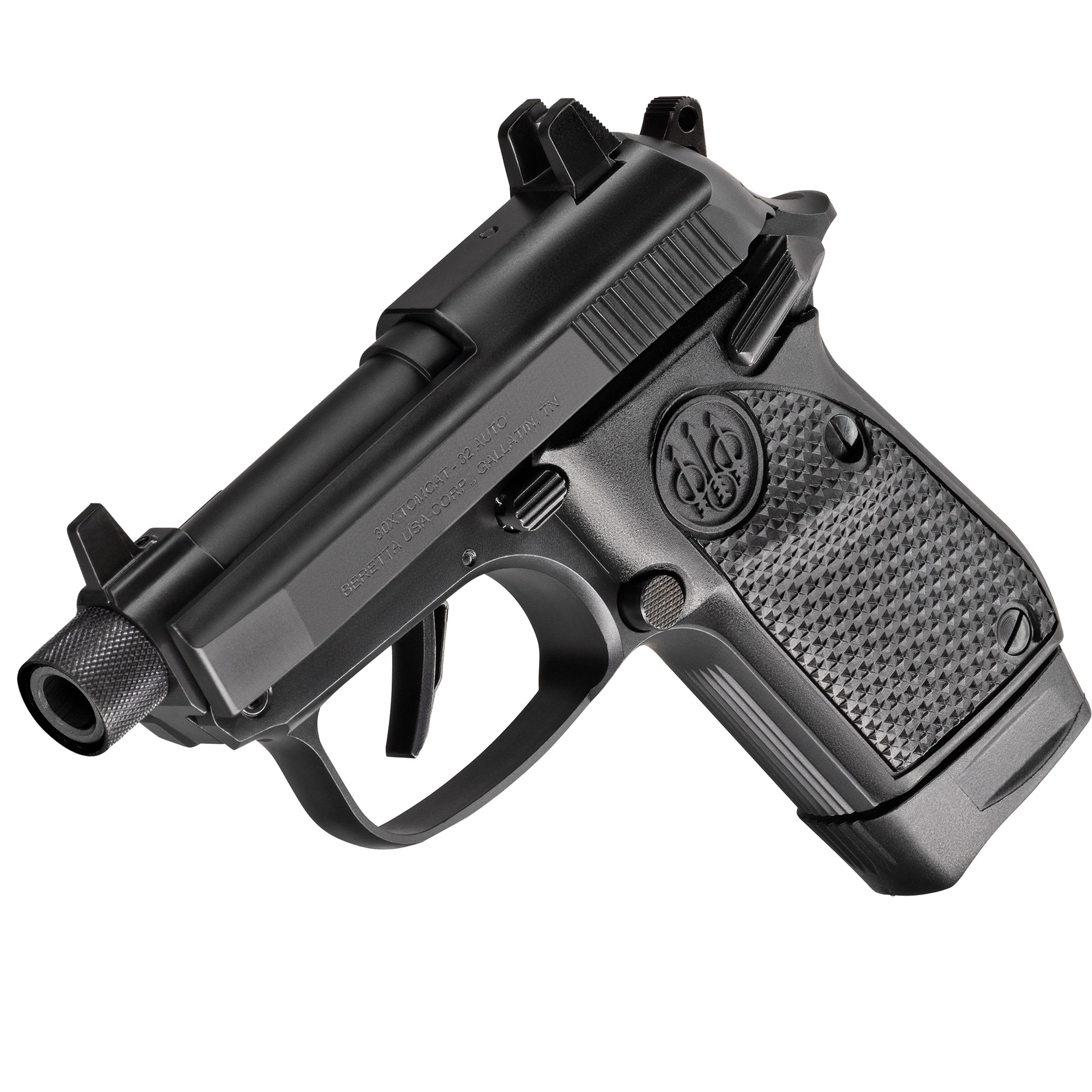 Built for enhanced shootability and durability, the 30X Tomcat incorporates improved ergonomics, repositioned controls, and Beretta's proprietary Helica textured grips for a secure and comfortable hold. The Trident Trigger System, featuring a skeletonized trigger and hammer, reduces trigger pull weight by 35% for a smoother shooting experience. With an 8-round capacity, reinforced frame construction, and interchangeable sight options via dovetail slide cuts, this pistol delivers dependable performance in a compact, versatile platform.