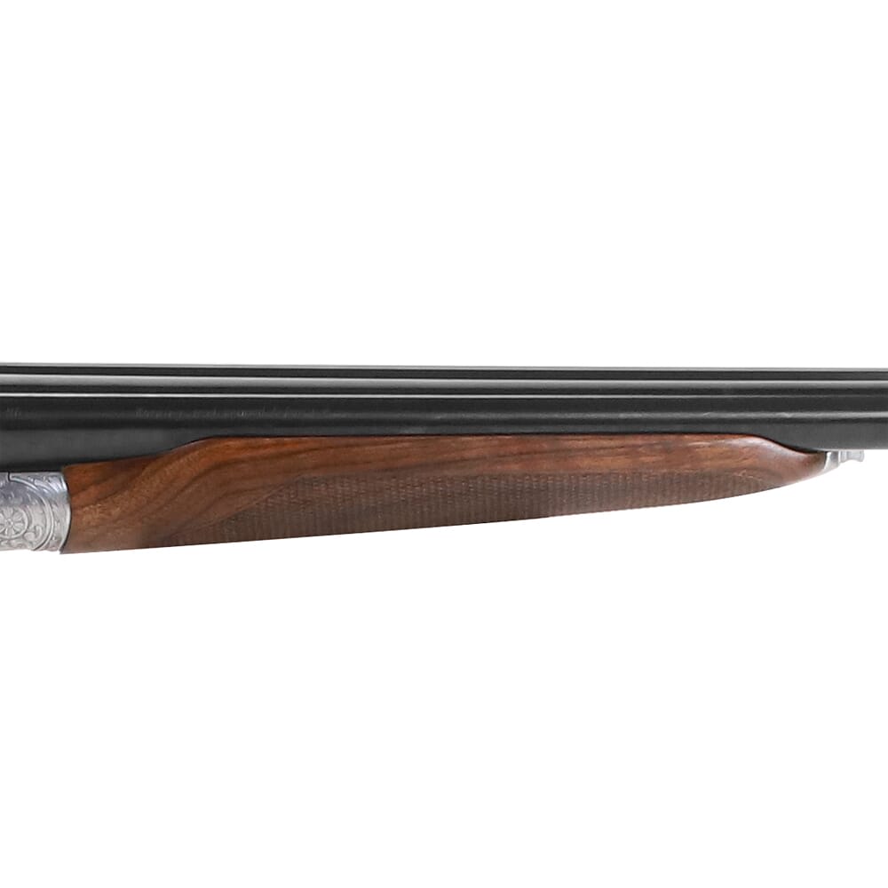 The Beretta combines a flawless, classic aesthetic with modern innovations to create the 486 Parallelo. It takes much of its visual design from the shotguns used in the social hunts in the Scottish Highlands from over a century ago. This is evident in the round action – the lack of straight lines gives the action and stock a harmonious appearance, that looks like they’ve grown together organically. The visual appeal is embellished even further with lavish English-style scroll engraving on the action and breech of the shotgun.