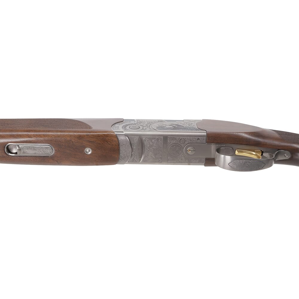 Beretta’s 687 Silver Pigeon III is a perfect representation of the elegance and quality Beretta’s shotguns are known for. This stylish sporting weapon has a finely engraved receiver; etched into the metal using state-of-the-art 5-axis laser technology. These beautifully engraved marking depict scenes of wild pheasants and partridges, placed against floral motifs to create an exquisite contrast that’s pleasing to the eye. The stock and foregrip are made from select 2.5 grade walnut wood, which is given a glossy stain that has water repellent characteristics. In addition the grip and foregrip have been given a checkered knurling pattern for an improved grip. The barrels are milled out of Steelium Optima Bore HD tri-alloy steel to ensure perfect ballistics, and outstanding accuracy.