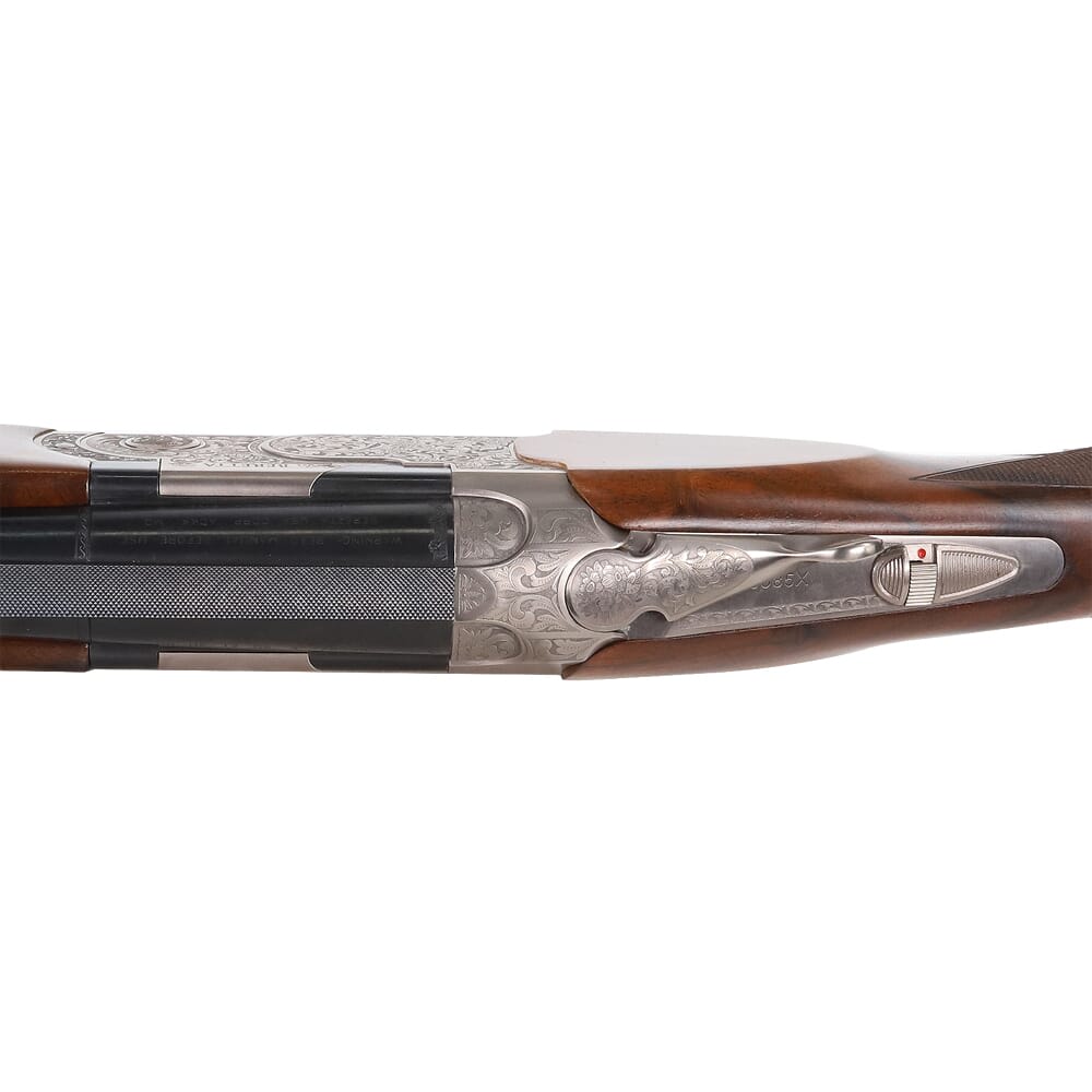 In addition to being a well-made, high-performance shotgun, the 687 Silver Pigeon V offers a level of elegance not found on shotguns of a lesser quality. The most notable example of this is the fine engravings on the receiver made by state-of-the-art 5-axis laser technology. These engravings are embellished by a special “sparkle in the bas-relief areas”, resulting in a highly aesthetic contrast effect which emphasizes the deep scroll motifs on the receiver, opening lever, trigger guard, locking shoulders, pins, and forend release. The visual appeal of the 687 Silver Pigeon V is further enriched by the class-3 wood stock and forend, which are treated with an exquisite glossy finish. Not only does the gloss finish exhibit the grain of the wood, it also provides protection from rain and humidity.