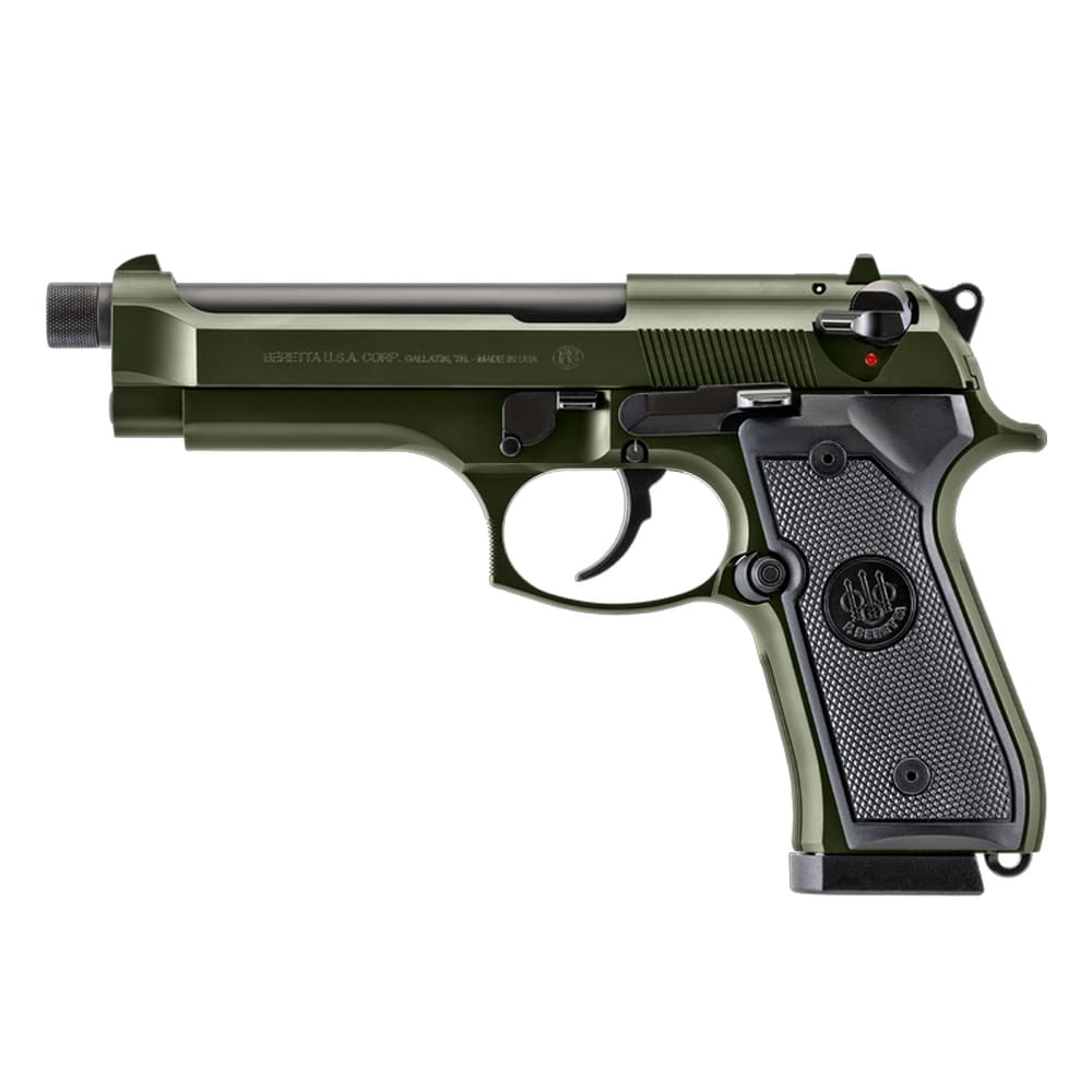 The Beretta 92FS OD Green (J92F300GR15) takes the proven, full-size 92FS platform and dresses it in a standout Olive Drab Cerakote finish while adding modern utility for duty or range use. With a threaded 5.1″ barrel and traditional DA/SA hammer action, it delivers the controllability and sight radius shooters expect from a service-scale pistol, while the ambidextrous safety/decocker and reversible mag release keep it user-friendly for left or right hands. Supplied with two 15-round magazines, familiar three-dot sights, and robust aluminum construction, the OD Green edition blends classic ergonomics and reliability with a tactical look that’s ready for suppression, extended magazines, or simply turning heads at the range.