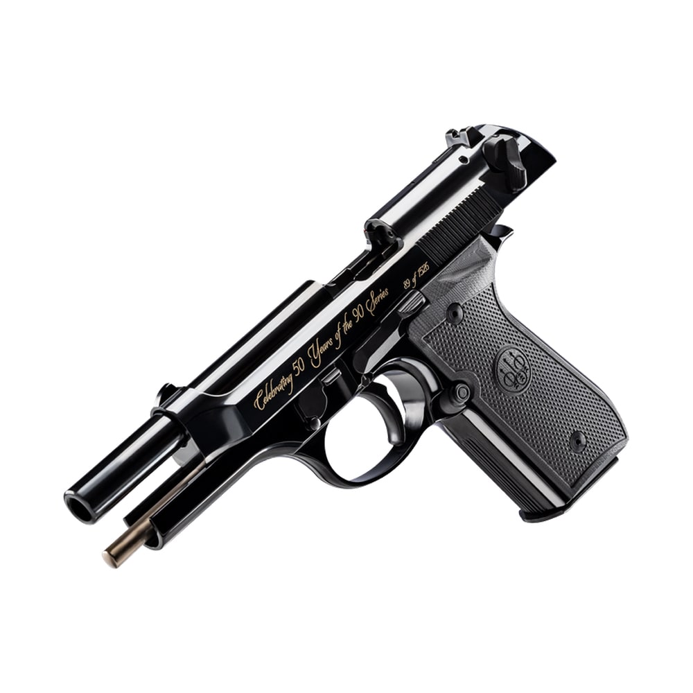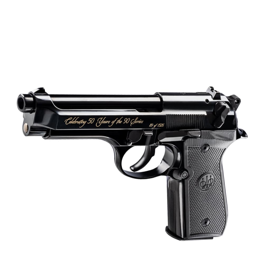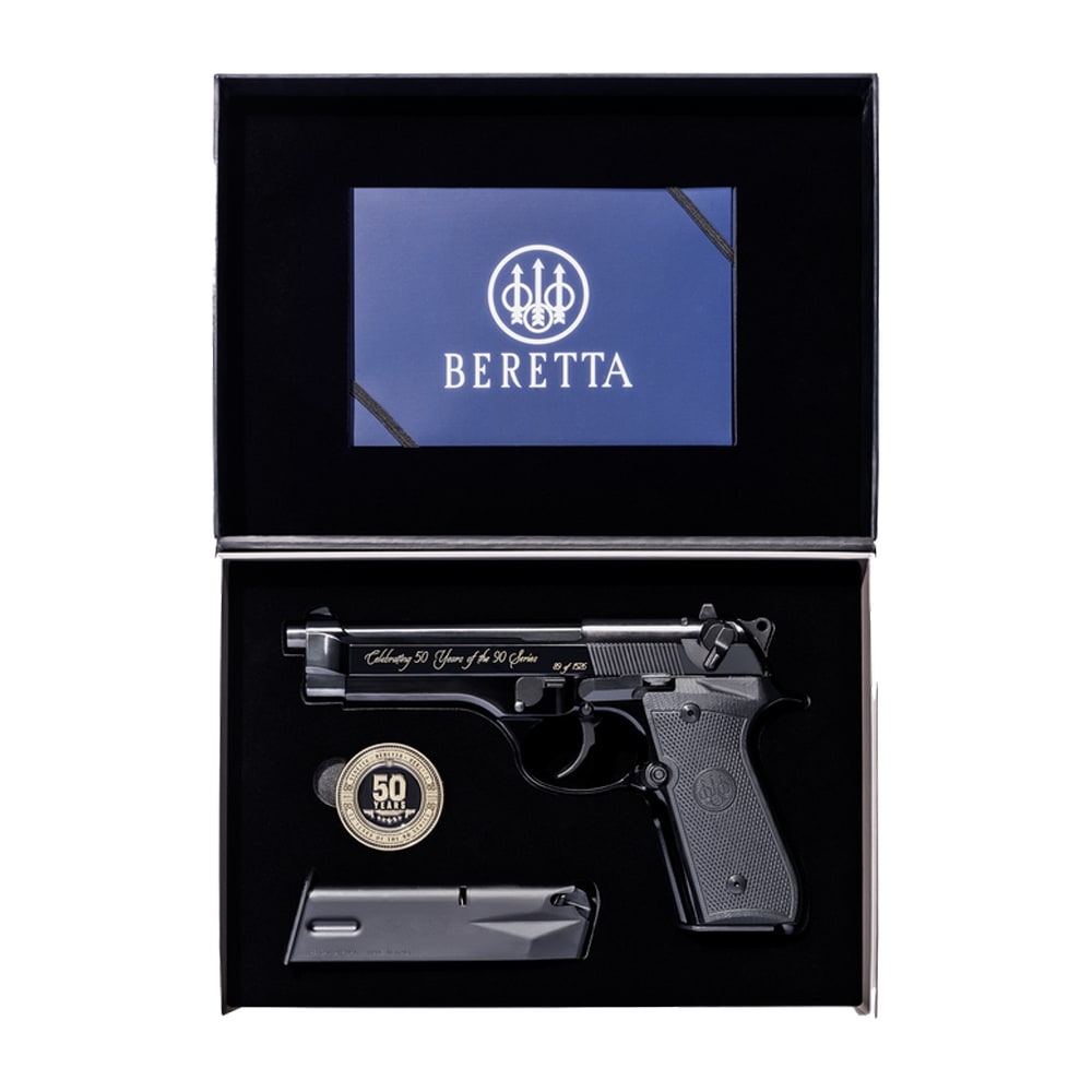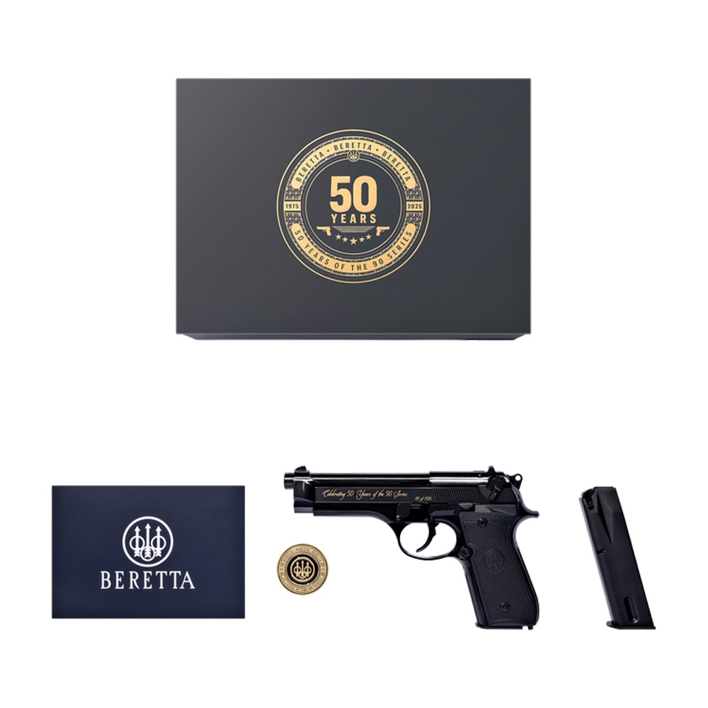 Celebrate a classic reborn with the Beretta 92SB Reproduction 90 Series 50th Anniversary pistol, a commemorative take on one of Beretta’s most iconic designs. Chambered in 9x19mm and built around the timeless SA/DA operating system, this model features the signature 4.9" barrel, open-slide design, and refined controls that helped define the original 92SB. Finished in a sleek black configuration and supplied with a 15-round magazine, it blends period-correct styling with modern manufacturing quality. Elegant, reliable, and historically significant, the J92SB15 is a collector-worthy tribute to 50 years of the 90 Series legacy.