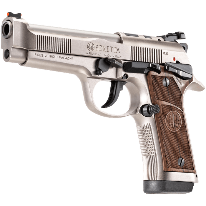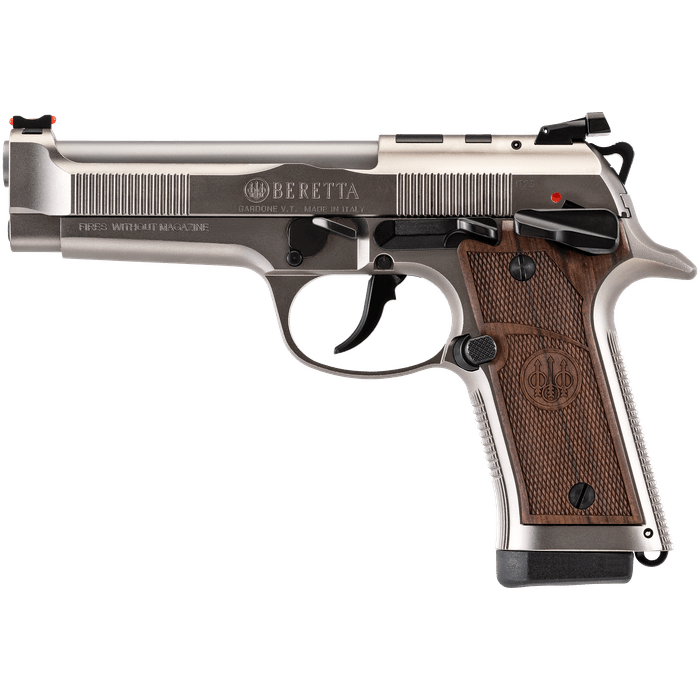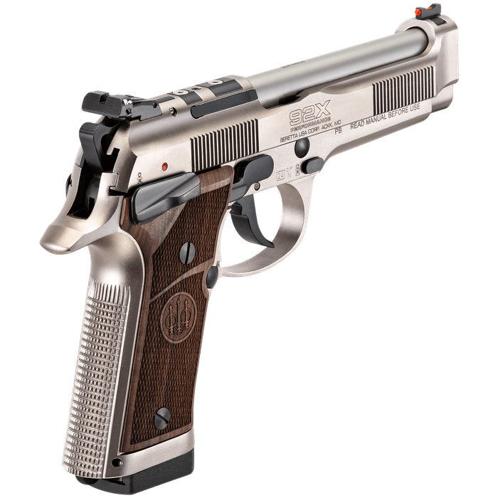 The Beretta 92X Performance Defensive Classic (SPEC0746A15) marries classic craftsmanship with modern performance: a lightened steel Vertec-style frame and a 4.6" stainless combat-crown barrel give it a planted, accurate feel, while thin walnut grip panels add a refined, tactile touch. Finished in a durable Nistan tone and fitted with an optic-ready slide and adjustable sights, it’s built for shooters who want traditional lines but expect contemporary reliability - the match-tuned X-Treme trigger and polished feed ramps promote crisp breaks and fast follow-ups, and the IDPA-friendly no-rail profile keeps the silhouette clean. Supplied with two 15-round magazines and premium fit-and-finish, the Defensive Classic is equally at home on the range, in competition, or as a high-quality heirloom piece for collectors.
