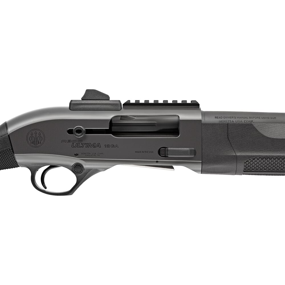 The A300 Ultima Patrol is a tactical version of one of Beretta’s most popular hunting shotguns. Similar to its hunting counterpart, the A300 Ultima Patrol utilizes a semiautomatic gas-operated action with a compensating exhaust valve, self-cleaning piston, and a chrome-lined barrel. The short, 19 ½” barrel gives it a compact size and makes it ideal for engaging targets while in confined spaces. It’s CQC capabilities are enhanced even further thanks to a 7-round extended magazine tube for some extra firepower and a modular ghost-ring rear sight for fast target acquisition. In addition to its effectiveness in close-quarters, the A300 Ultima Patrol was built to be extremely reliable and easy to use. It sports a large textured bolt release, an oversized charging handle, and a hefty safety button that can be switched from side to side. The amplified checkering around the grip and fore-end ensures the operator will have a consistent grip on the weapon, even when wearing gloves. Aside from its ease of use and close range capabilities, the A300 Ultima Patrol is a highly customizable platform. A receiver mounted MIL-STD Picatinny rail allows for the installation of optics, and M-LOK attachment points on the forend and barrel clamp accommodates the use of tactical lights/lasers.