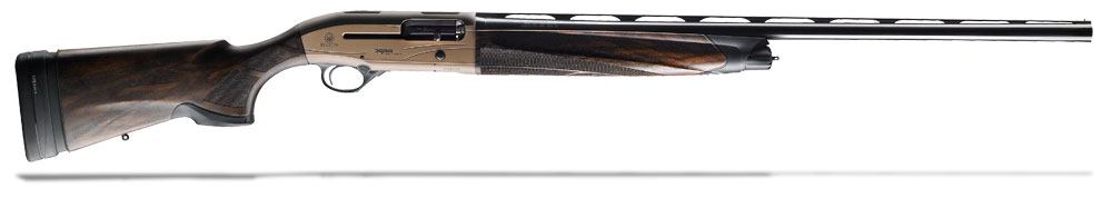 This Beretta A400 Xplor 12-gauge shotgun with a 28" barrel features Kick-Off, an adjustable shim system, checkered select walnut stock with an Xtra-Grain technology oil finish, bronze receiver, fore-end checkering with the Beretta logo, crossbolt ergonomics for a better grip, fiber optic sight, micro-core recoil pad, and a chrome-plated trigger.