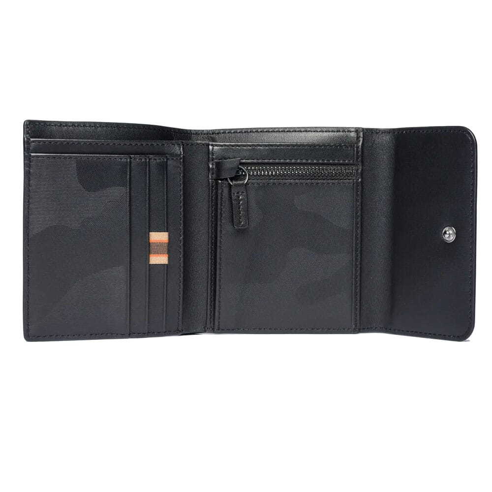 Casual Bifold Wallet with Flap made of 100% leather with polyester lining. Characterized by the camo pattern embossed on the leather with a 3D technique.