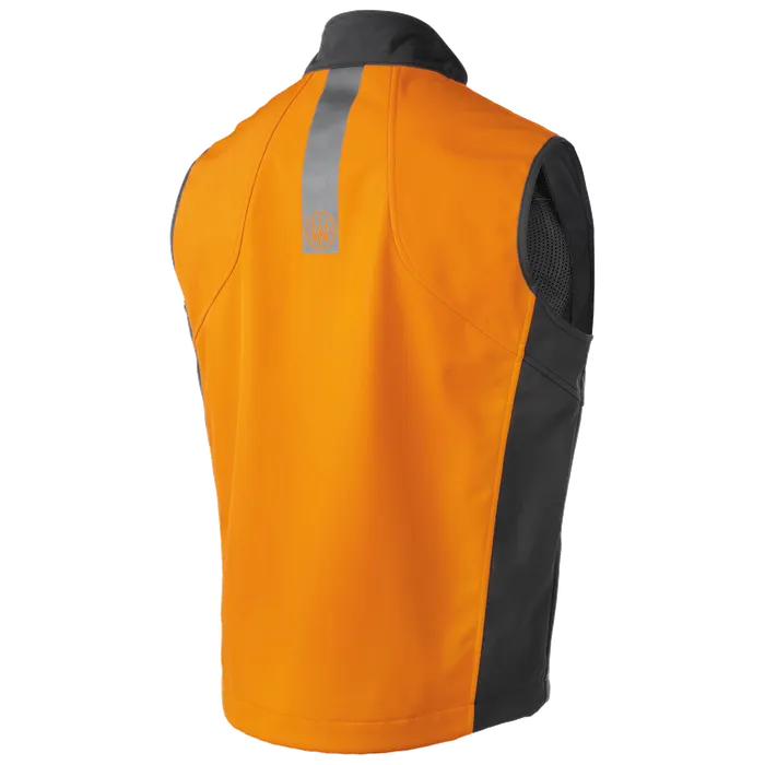 Featuring a sleek charcoal exterior with a vibrant blaze orange interior, this vest is not only visually striking but also highly practical. The softshell material is engineered to provide excellent wind resistance, ensuring you stay warm and comfortable in varying weather conditions. The vest is lightweight and breathable, making it ideal for layering, whether youre on a brisk morning hike or a day in the field.