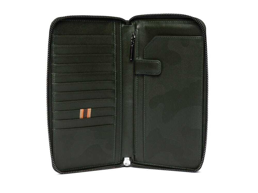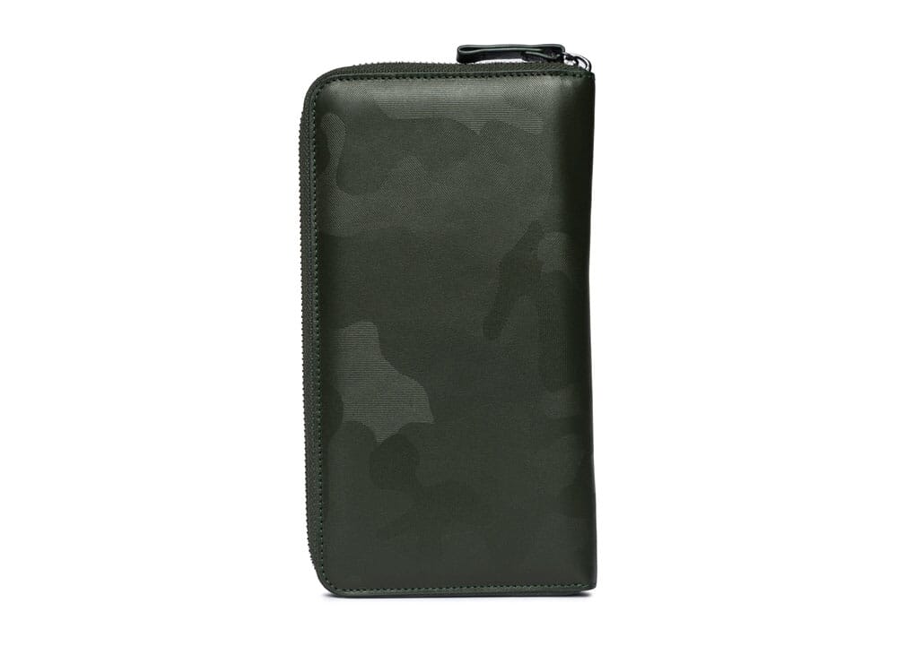 Casual Zipped Travel Pouch made of 100% leather with polyester lining. Characterized by the camo pattern embossed on the leather with a 3D technique.