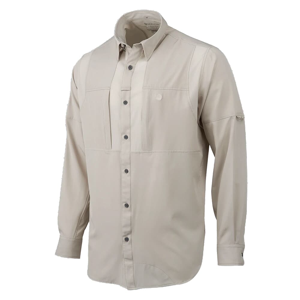 Beretta's TKAD Flex Long Sleeve Shirts have a 4-way stretch synthetic soft wrinkle resistant fabric. Beretta TKAD & EVAD Flex Shirts are embedded with UPF 50, Scent & Odor control, and mesh paneling. Mesh paneling on the back spine enhances breathability when wearing vests, carrying backpacks, or just adding superior ventilation on those hot summer days. Additional performance features include a loop on the front plaquette to hang your glasses and a microfiber insert inside shirt bottom opening to clean your glasses.