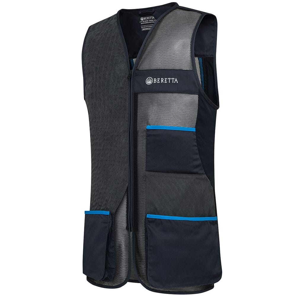 Shooting vest in breathable mesh and stretch cotton with microsuede shooting patch and expandable front pockets.The microsuede shooting patch contains laser-cut details for greater grip of the gun stock. The body is mostly breathable and elastic 3D mesh with side panels in stretch material to ensure excellent fit and freedom of movement. The front pockets are expandable with hidden snap buttons.