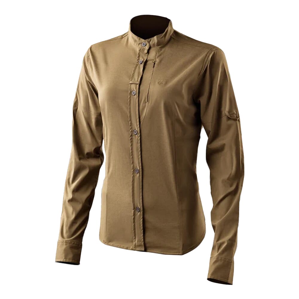 Performance field shirt with comfort 4-way stretch, breathable caped back mesh yoke, and hidden chest pocket. Additional design details include a loop on the front plaquette to hang your glasses and a microfiber insert on the inside bottom opening to clean your glasses.
