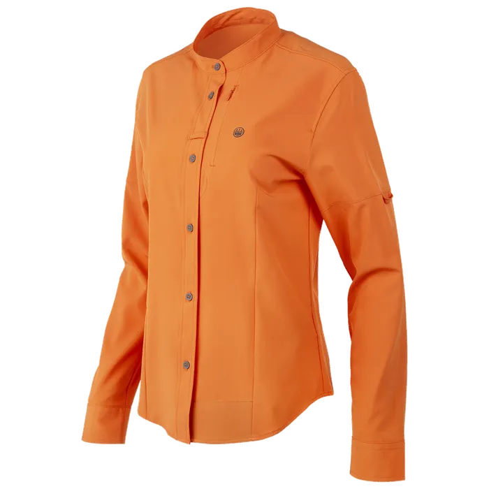 Step into the world of comfort and style with the Beretta Women's EVAD Flex Long Sleeve Button-Down Shirt. Compatible with the modern woman in mind, this shirt combines functionality with a touch of elegance. The vibrant orange hue adds a pop of color to your wardrobe, making it a versatile piece for both casual and outdoor settings. Crafted with a flexible fabric, it ensures ease of movement, making it perfect for a day of adventure or a casual outing.