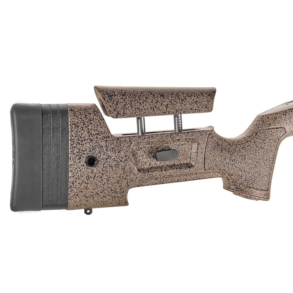 The HMR or Hunting and Match Rifle features an integrated mini-chassis molded into the stock for repeatable accuracy. The stock also features an adjustable cheekpiece and length of pull adjustments. The Bergara #6 taper barrel is threaded, includes a thread protector, and is fully free floated in the HMR stock to achieve optimal precision. A 5-round AICS detachable magazine is standard and QD flush cups are included in the stock to allow for easy attachment and removal of slings. This rifle is chambered for .22-250 Rem, .300 Win Mag, .308 Win, .450 Bushmaster, 6mm Creedmoor, 6.5 Creedmoor, and 7mm Rem Mag.