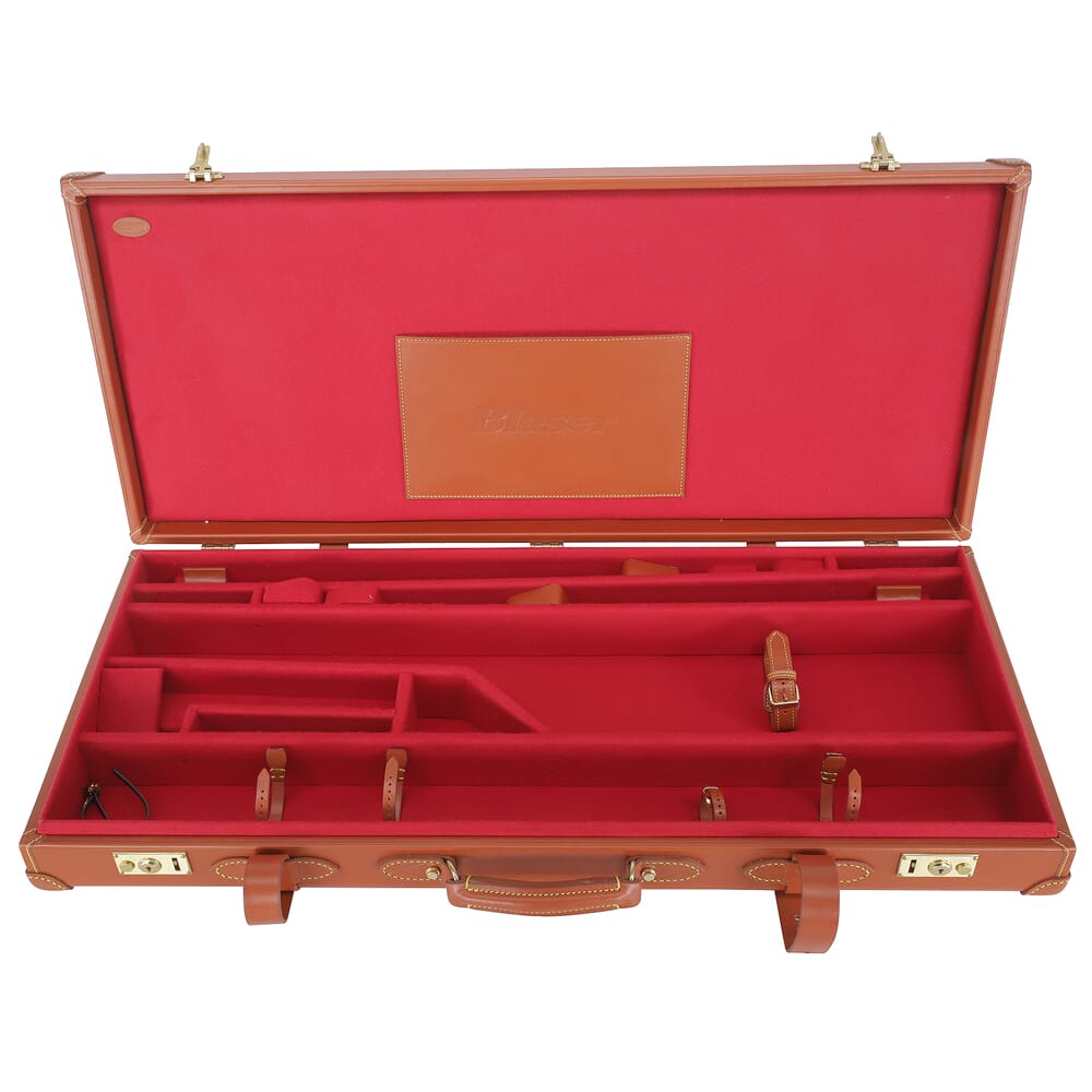 The Model C Leather Rifle Case is the perfect accessory for the discerning shooter. Its elegant design features fine, cognac-colored leather, a padded burgundy interior, and internal compartments for storing shooting supplies. The Model C is intended for rifles and combination guns with barrel lengths up to 27.5 inches.