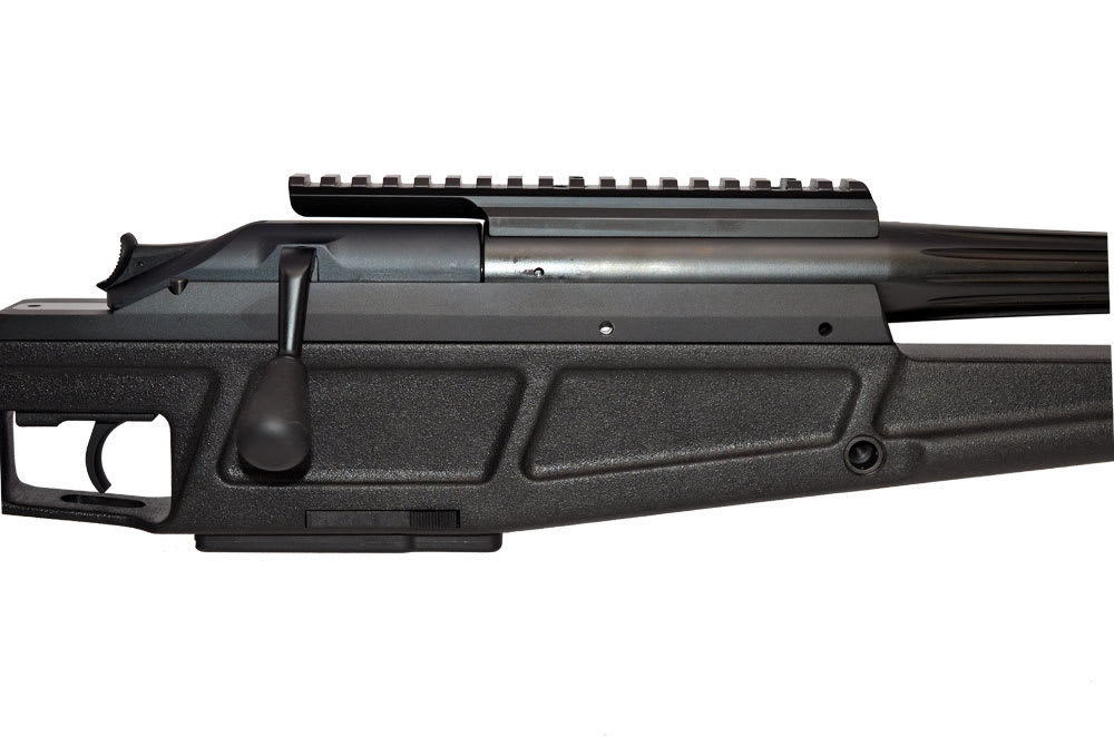 The receiver is machined from aircraft grade billet aluminum alloy and is the interface for the barrel, bolt assembly, trigger assembly and magazine. A recoil lug of hardened steel is integrated into the receiver. The entire unit is fixed to the stock, eliminating temperature induced distortion. The outer surface is hard anodized.