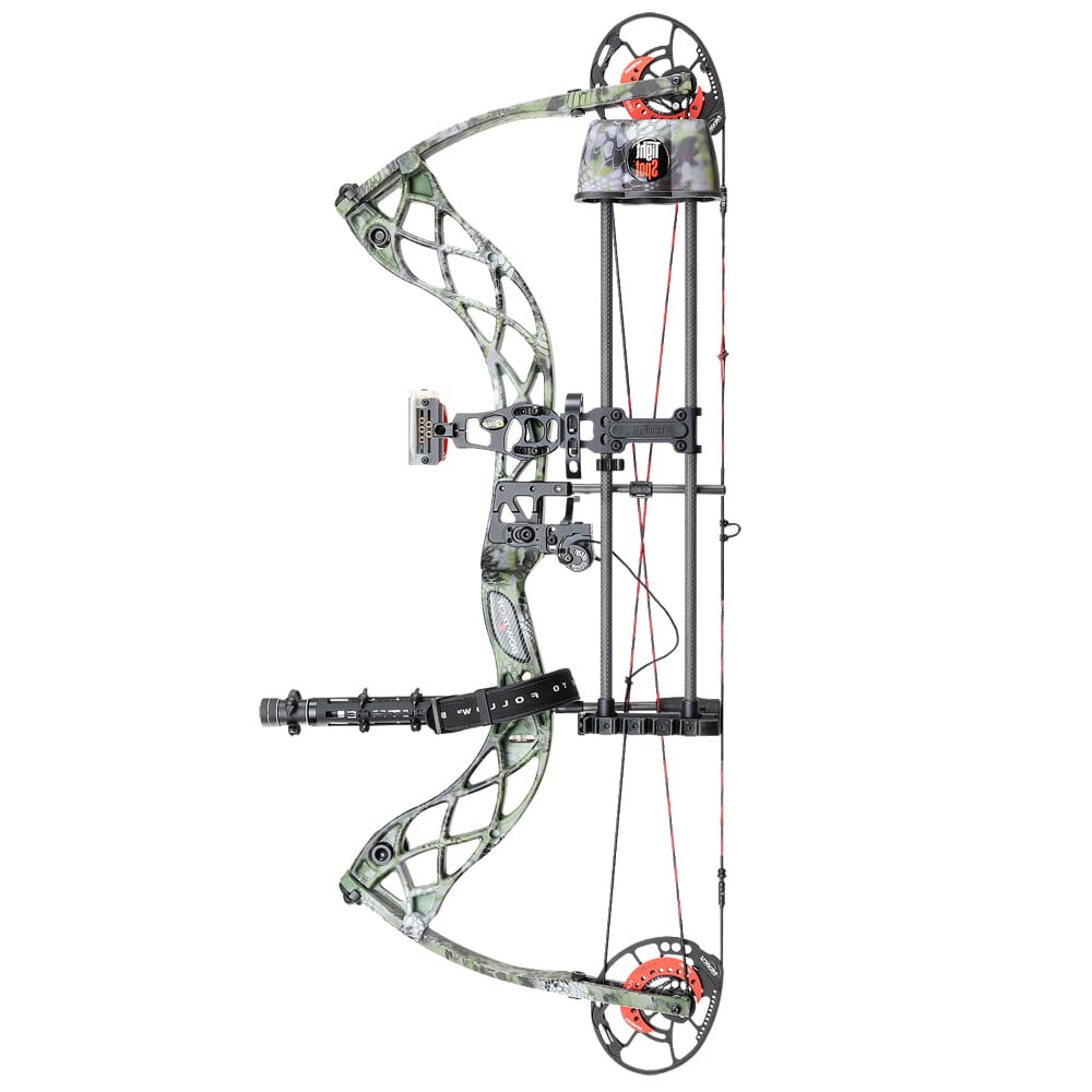 BowTech’s Carbon Zion DLX is one of the lightest, most accurate carbon bows on the market, and comes standard with top-tier accessories right out of the box. Weighing in at a mere 3.3lbs, the Carbon Zion DLX is built from aerospace inspired carbon fiber, a material known for its strength and lightweight. This construction allows you to cover more ground, and with an axel-to-axel width of just 31 inches, the Carbon Zion DLX is incredibly maneuverable in confined spaces like in a tree stand or in a hunting blind. At the heart of the Carbon Zion DLX is the Synchronized Binary Cams, a system widely regarded as one of the most accurate in the world. This cam system is engineered with two perfectly symmetrical cams that deliver flat-line nock travel and are easily tunable. The Synchronized Binary Cams is perfectly complimented by BowTech’s patent pending Powershift Technology, which allows the shooter to customize the draw cycle to adapt their shooting style. Other features of the Carbon Zion DLX include a carbon riser which offers excellent rigidity for enhanced accuracy, and the Orbit Dampener can be strategically positioned to offset the weight from the installation of accessories, while also reducing shock and vibration. In addition, the Carbon Zion DLX comes fully equipped with premium accessories including a RipCord arrow rest, a Black Gold sight, an Octane stabilizer, and a TightSpot 5-arrow quiver.