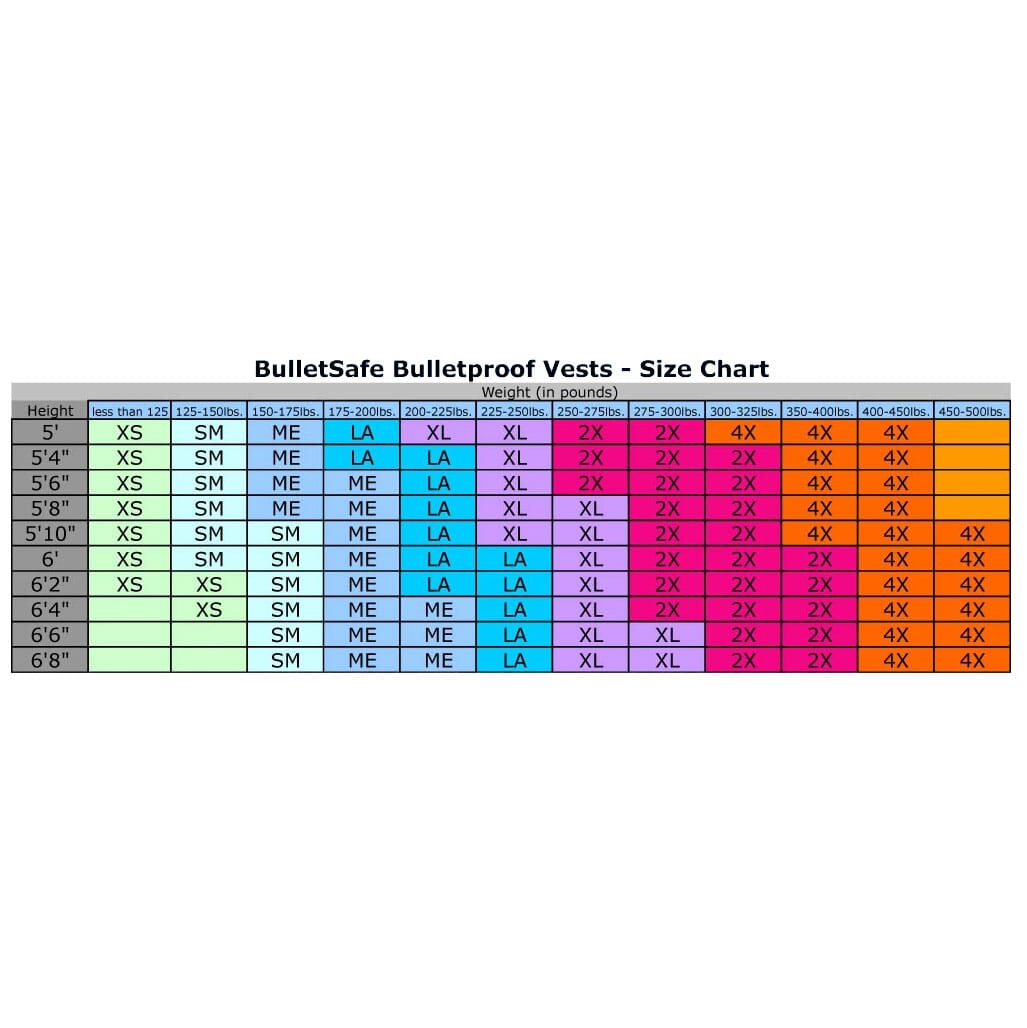 Your bulletproof vest size is not your t-shirt size. If you have a larger midsection, choose the size at the top of your size range. If you have a smaller midsection, order at the bottom of your size range.