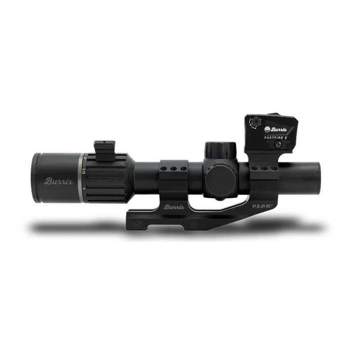 The Burris RT‑6 30mm 1–6×24mm Kit with FFE Red Ballistic AR Reticle is a purpose‑built low‑power variable optic (LPVO) designed for fast‑handling rifles such as AR platforms, tactical rigs, and hunting setups where quick target acquisition and practical holdovers matter. Featuring a 1–6× magnification range and a 24mm objective lens, it delivers a wide field of view at 1× for close‑in engagements and smooth zoom to 6× for precision work at distance. The FFE Red Ballistic AR reticle combines intuitive aiming points with bright red illumination for enhanced contrast in varied lighting conditions, while its 30mm tube and fully multi‑coated optics provide solid light transmission and clear, high‑resolution images. Built with robust turrets, 1/2 MOA adjustments, and a compact, lightweight profile, this RT‑6 kit typically includes everything needed to get mounted and shooting, making it a versatile choice for 3‑Gun competition, tactical use, or general‑purpose rifle platforms.