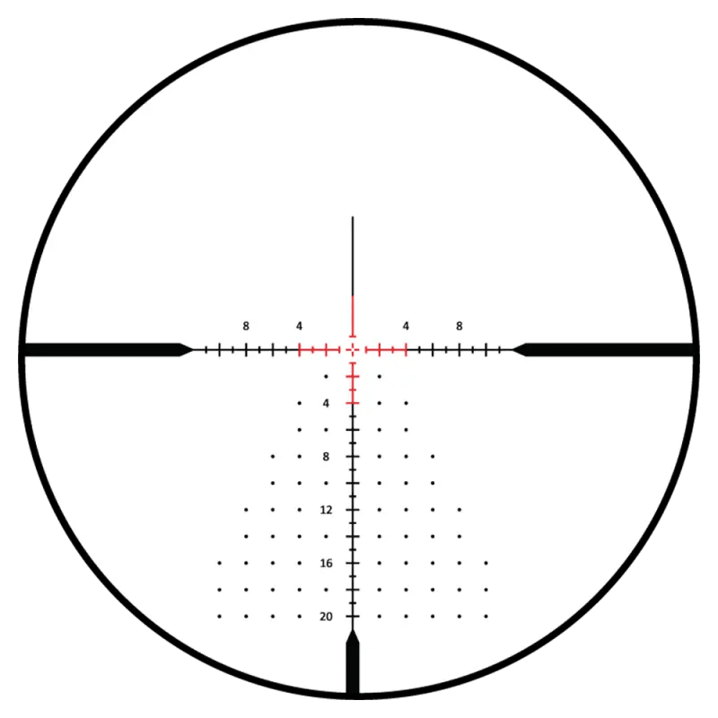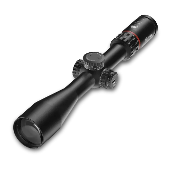 The Burris Veracity 30mm 5–25x50mm RCT MOA FFP Riflescope features precision elevation and windage turrets with conventional clockwise rotation. Turning the elevation turret clockwise moves the point of impact down, while counterclockwise rotation moves it up, allowing shooters to make intuitive vertical adjustments. Similarly, the windage turret moves the point of impact left when turned clockwise and right when turned counterclockwise. Both turrets are marked in 1/4 MOA increments, offering a total of approximately 64 MOA vertical travel and 30 MOA horizontal travel, ensuring precise, repeatable adjustments for long-range, hunting, or tactical shooting applications. The turrets are robust, easy to manipulate, and designed to maintain zero even under heavy recoil.