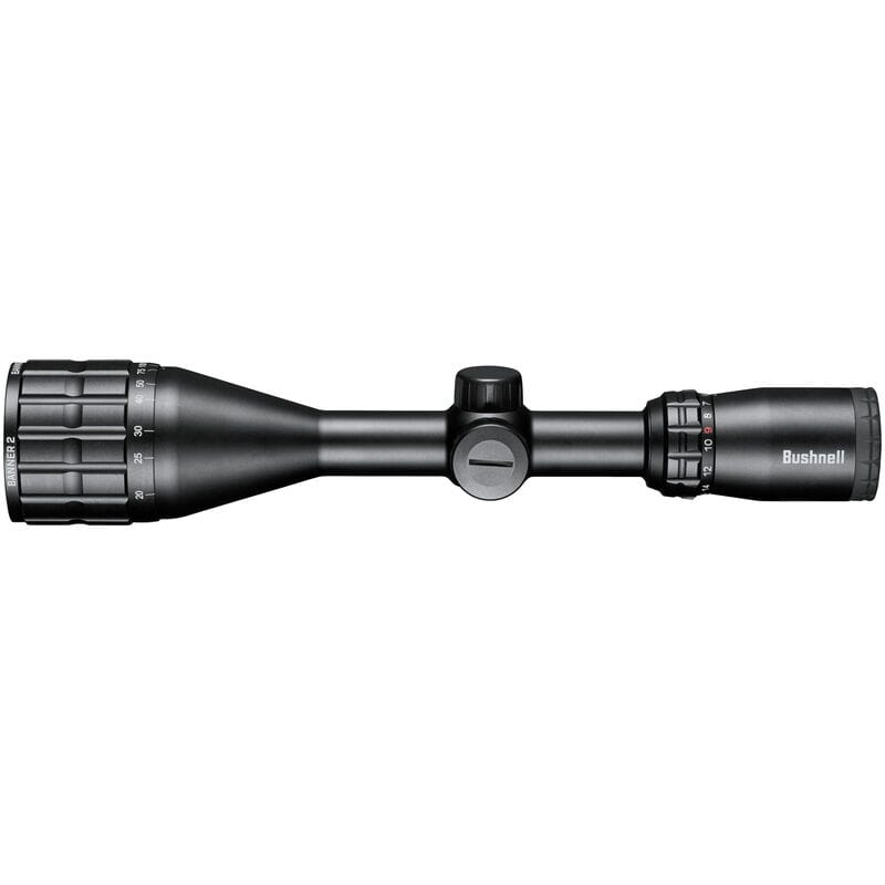 Bushnell's Banner 2 6-18x50mm Riflescope combines pristine optical performance with an unbeatable price. It comes standard with Bushnell's Dusk & Dawn multi-coated lenses for maximum image quality in almost any lighting condition. An illuminated reticle provides improved visibility of the reticle in low light or darker environments, and the control has an "off" position between each intensity setting so you don't have to return to zero and lose your preferred intensity. The reticle itself is the DOA Quick Ballistic Reticle which provides 4 simple drop points to get you from your 100-yard zero out to 500 yards with 11 specific cartridges. Like all Bushnell optics, the Banner 2 6-18x50mm is built to withstand the elements and will stay in the hunt as long as you can. With a durable one-piece body that is IPX7 waterproof rated you can trust that the Banner will last year after year. Additionally, the Banner 2 includes weaver style aluminum rings in the box.