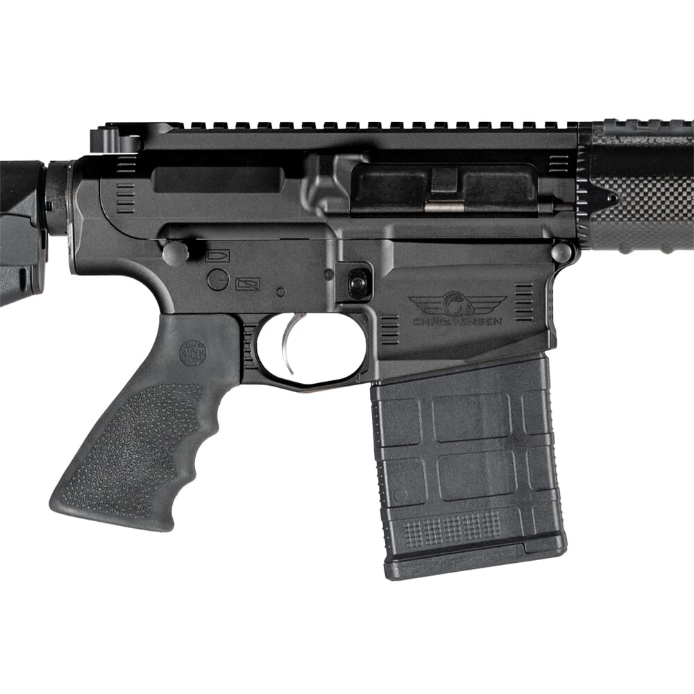 The Christensen Arms CA-10 DMR is the flag ship firearm in Christensen's modern sporting rifle line up. They now offer a variety of rifles built off of the 7.62x51/.308 Win. Casing, including this one. These rifles run on a direct impingement gas system with a fixed gas block, single stage match grade trigger and a carbon fiber wrapped target barrel for increase barrel rigidity without the added weight of a traditional steel barrel. To further decrease weight to an incredibly light 7.2 lbs. it comes with a keymod forgrip completely made out of carbon fiber. It features a proprietary titanium side baffle muzzle brake, MagPul ACS stock, Hogue Overmolded pistol grip and 20 round MagPul magazine. This extremely accurate light weight semi-automatic rifle is perfectly suited for any application from hunting to home defense.