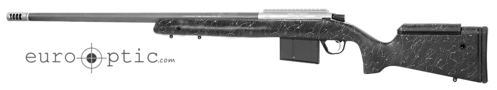 The ELR series of rifles is purpose-built for long-range hunting. It combines all of the features that a discerning hunter is interested in, maximizing performance potential and minimizing weight. The stock is made from lightweight carbon fiber composite material, and is optimized for long range accuracy. The but cant is adjustable, and the comb and length of pull are both fully adjustable via spacers. A modified beavertail forearm and tactical grip promotes greater comfort in virtually any shooting position, and (5) flush cup mounts accommodates the use of a sling or bipod. The stock is mated to the action with spot bedding and stainless steel pillars, ensuring superior stability. The action itself features an integral picatinny rail for virtually unlimited mounting options, and a 20 MOA inclination helps extend the elevation adjustment range of mounted optics. The bolt features hand-lapped twin lugs, a spiral fluting, and an M16 style extractor for ensure flawless feeding and extraction of cartridges and brass. The ELR’s action is topped off is a fully adjustable match grade trigger and for superior accuracy, and is giving a Nitride treatment for resistance to the elements and corrosion. The ELR is also equipped with carbon fiber barrel. The barrel making process starts with a 416R stainless steel bar, which is precision drilled, button rifled, and turned down to an ultra-slim profile. The barrel is then wrapped in layers of a proprietary carbon fiber material that was originally used in the aircraft industry, before being threaded, and given a titanium radial muzzle brake to mitigate recoil. The result is a barrel with a light target contour and a match chamber, which exceeds the standards associated with traditional steel barrels but without the weight.