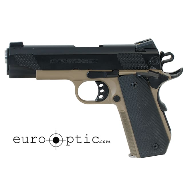 The Christensen Arms C4 is a 1911 style pistol with a 4" barrel, Flat Dark Earth Stainless steel frame with black stainless steel slide. This pistol is an incredibly accurate 1911 featuring hand fit slide and frame, a stainless steel match grade barrel, bobtail frame treatment, Novak Night Sights, VZ G10 grips/carbon fiber grips and a full length guide rod. This stunning 1911 will grant its owner the familiarity that only the 1911 platform can offer but with state of the art materials, tolerances and processes.