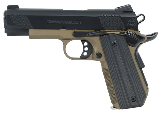 The Christensen Arms C4-TI is a 1911 style pistol with a 4" barrel and Burnt Bronze Titanium frame with black stainless steel slide. This pistol is an incredibly accurate 1911 featuring hand fit slide and frame, a stainless steel match grade barrel, bobtail frame treatment, Novak Night Sights, VZ G10 grips/carbon fiber grips and a full length guide rod. This stunning 1911 will grant its owner the familiarity that only the 1911 platform can offer but with state of the art materials, tolerances and processes.