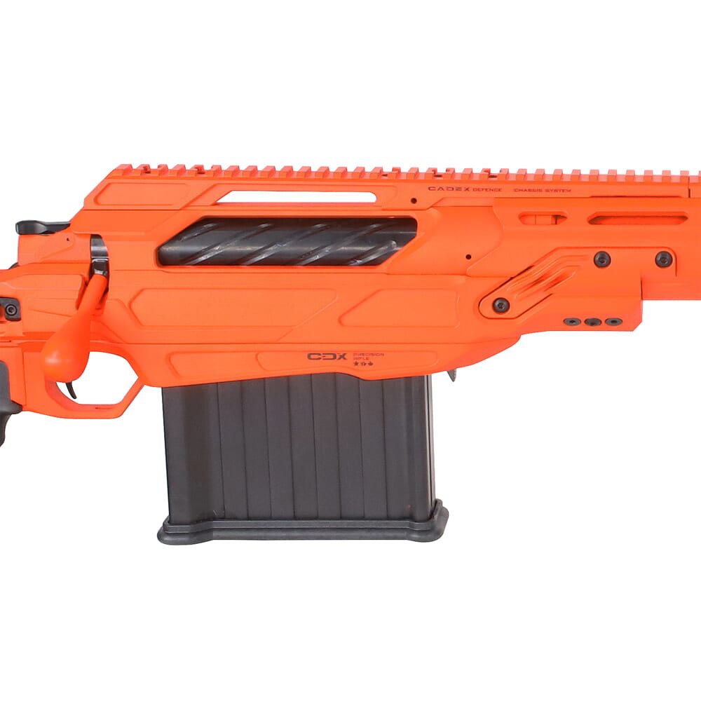 The Cadex Defense Tremor .50 BMG 32" Orange Rifle is a precision-engineered firearm designed for extreme range and anti-material applications. Built to military specifications, this lightweight bolt-action rifle features a 32" barrel with a 1:15" twist rate, ensuring exceptional accuracy and manageable recoil. The rifle's chassis is made from aircraft-grade 6061-T6 aluminum, anodized and painted with military-grade non-reflective paint. With a fully adjustable stock, oversized trigger guard, and magazine release, the Cadex Tremor offers unparalleled performance and reliability in the field.
