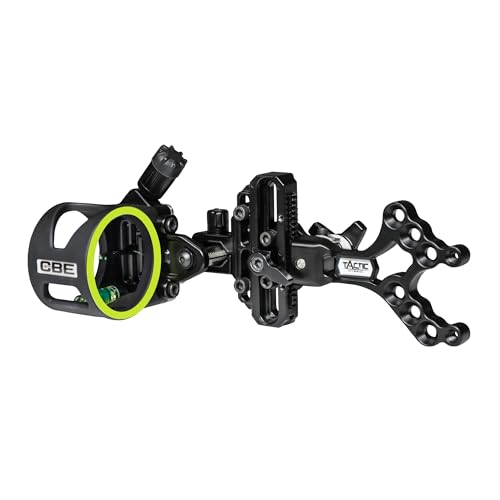 The CBE Tactic Hybrid, 1 Pin, 0.019" Fibers CBE-TCH-1-19 is an ultra-light, compact bow sight designed for precision and versatility. Featuring a movable pin with a rapid stop, this sight allows for quick and accurate adjustments. The fiber management system ensures brighter pins and better protection, while the laser marked hashes aid in pin adjustment. The ambidextrous design includes a rheostat sight light and sight scales, making it suitable for both left and right-handed archers
